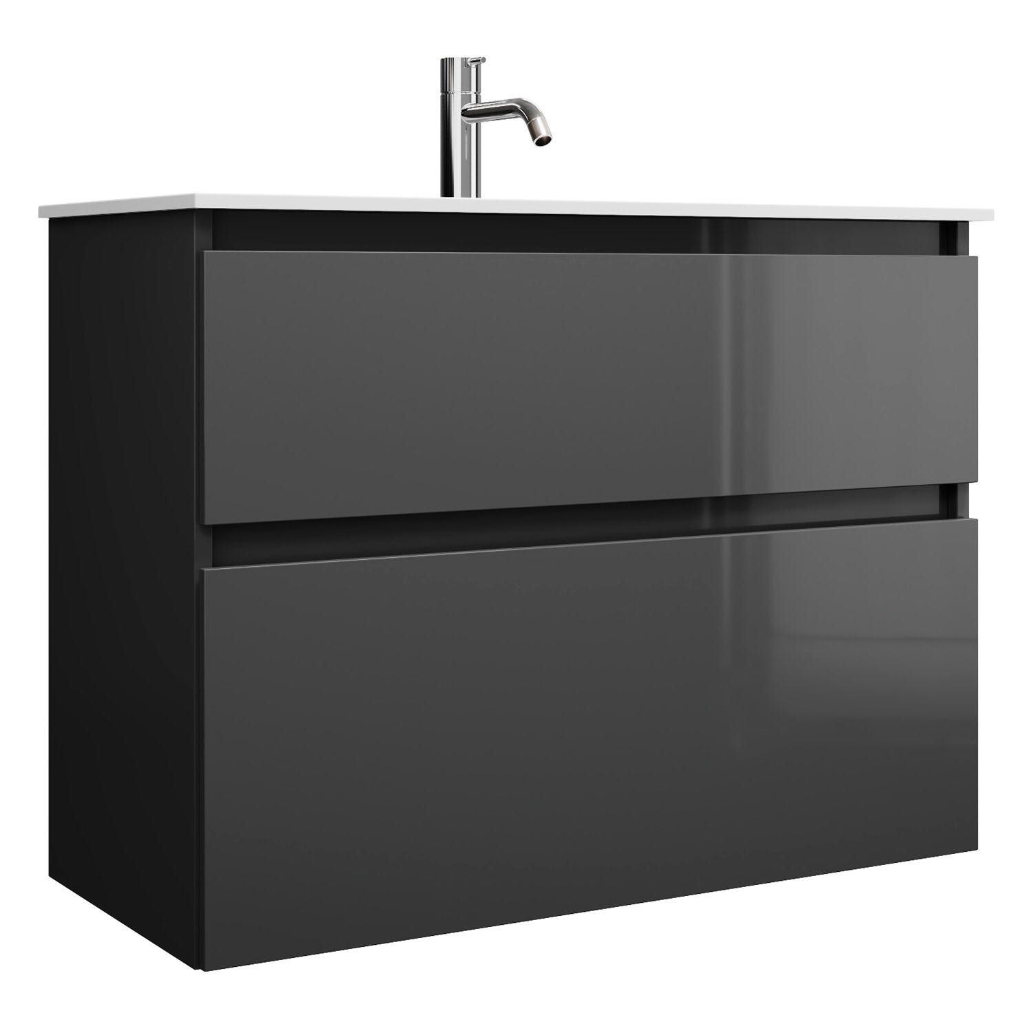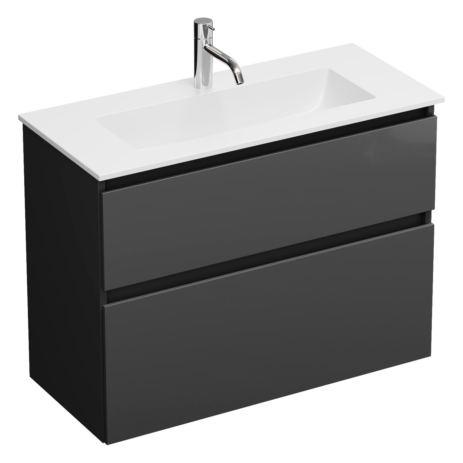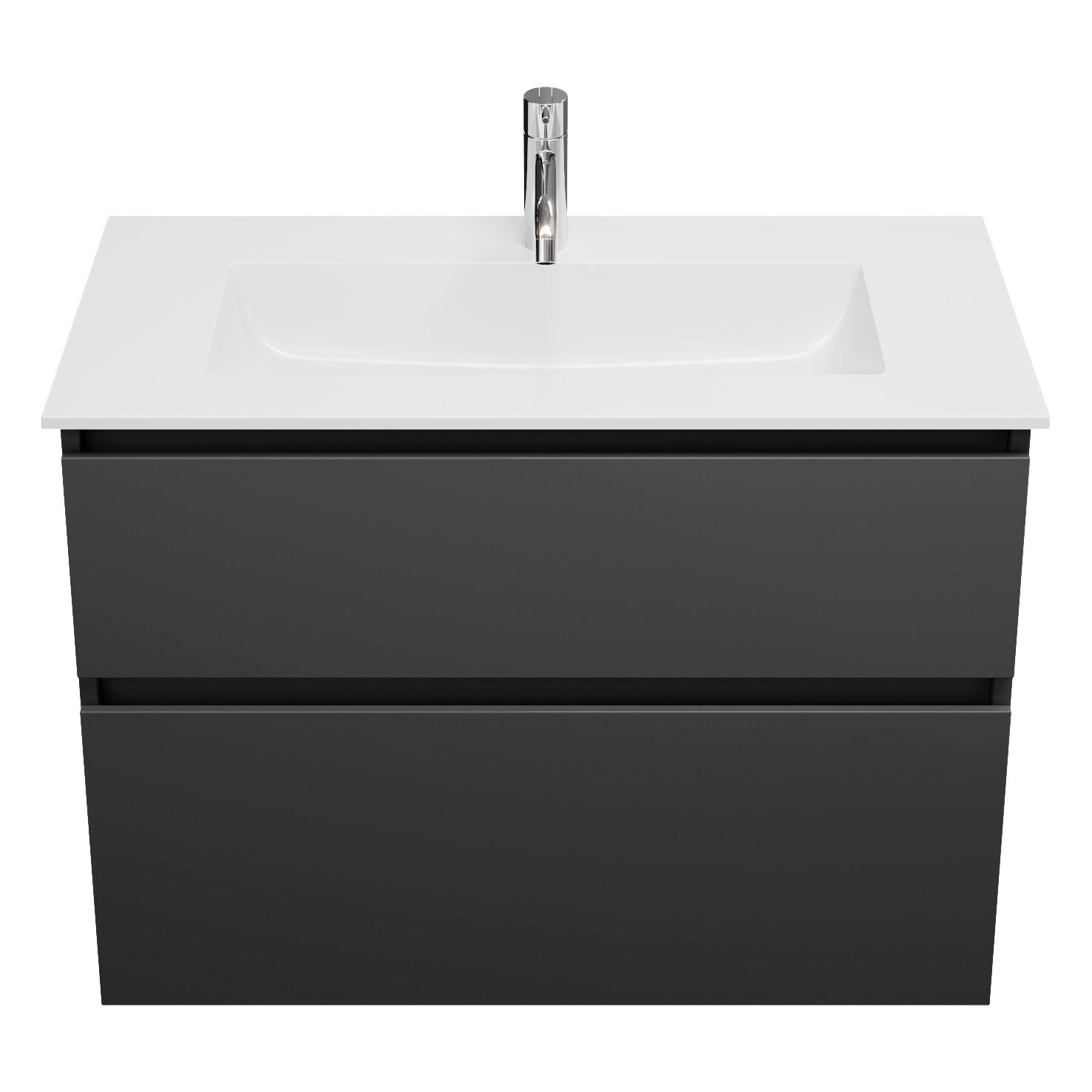burgbad Lin20 Waschtischunterschrank mit Mineralguss-Waschtisch 82 cm, 2 Auszüge