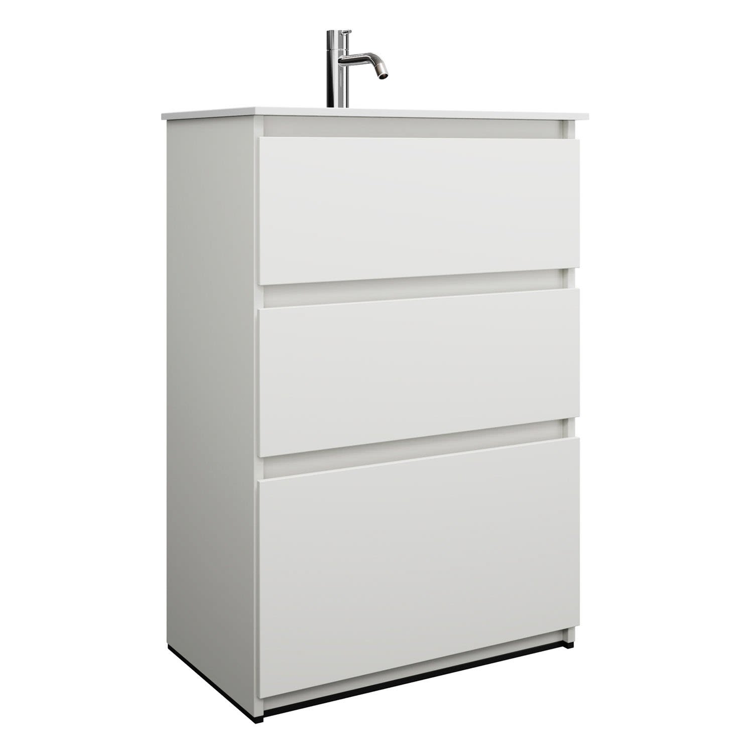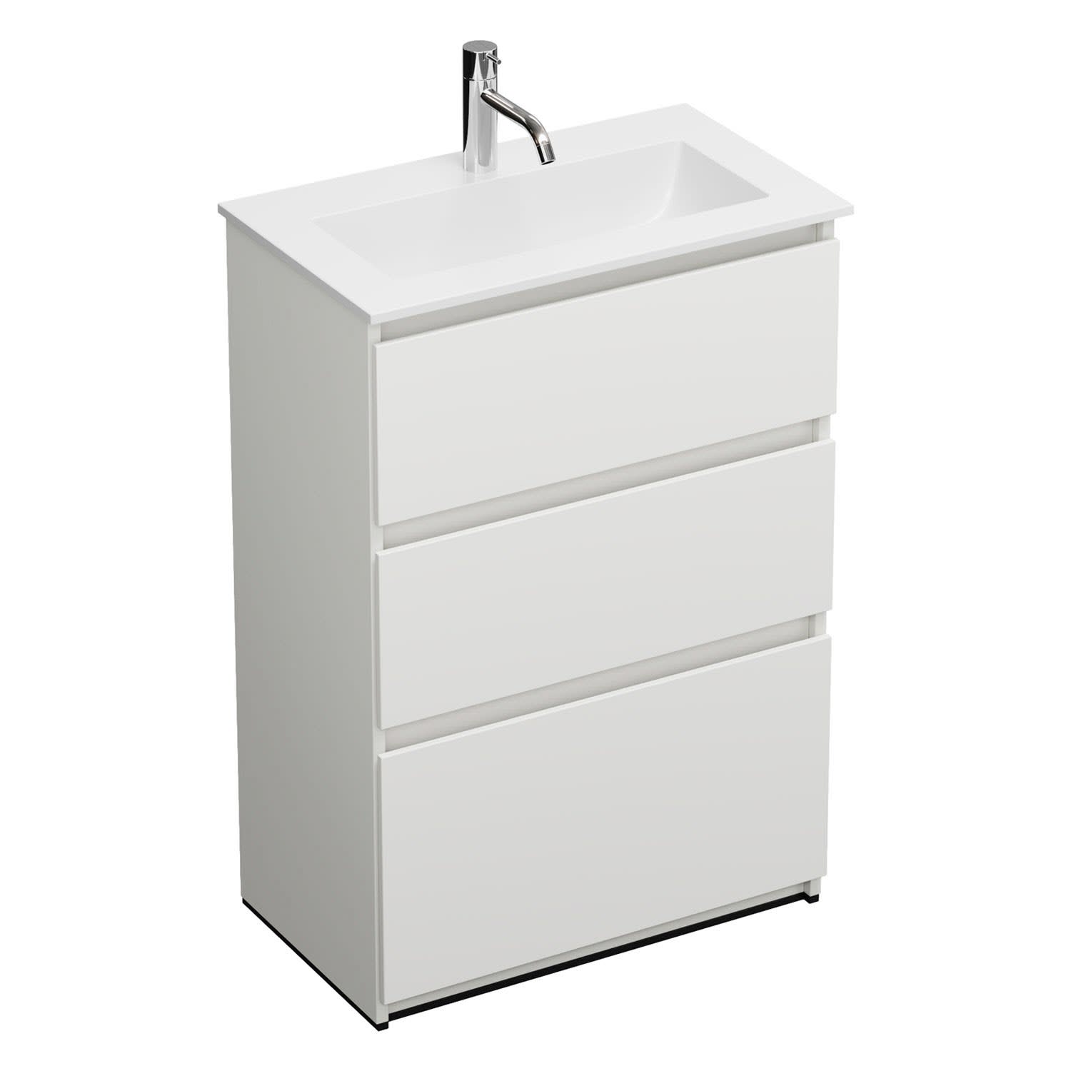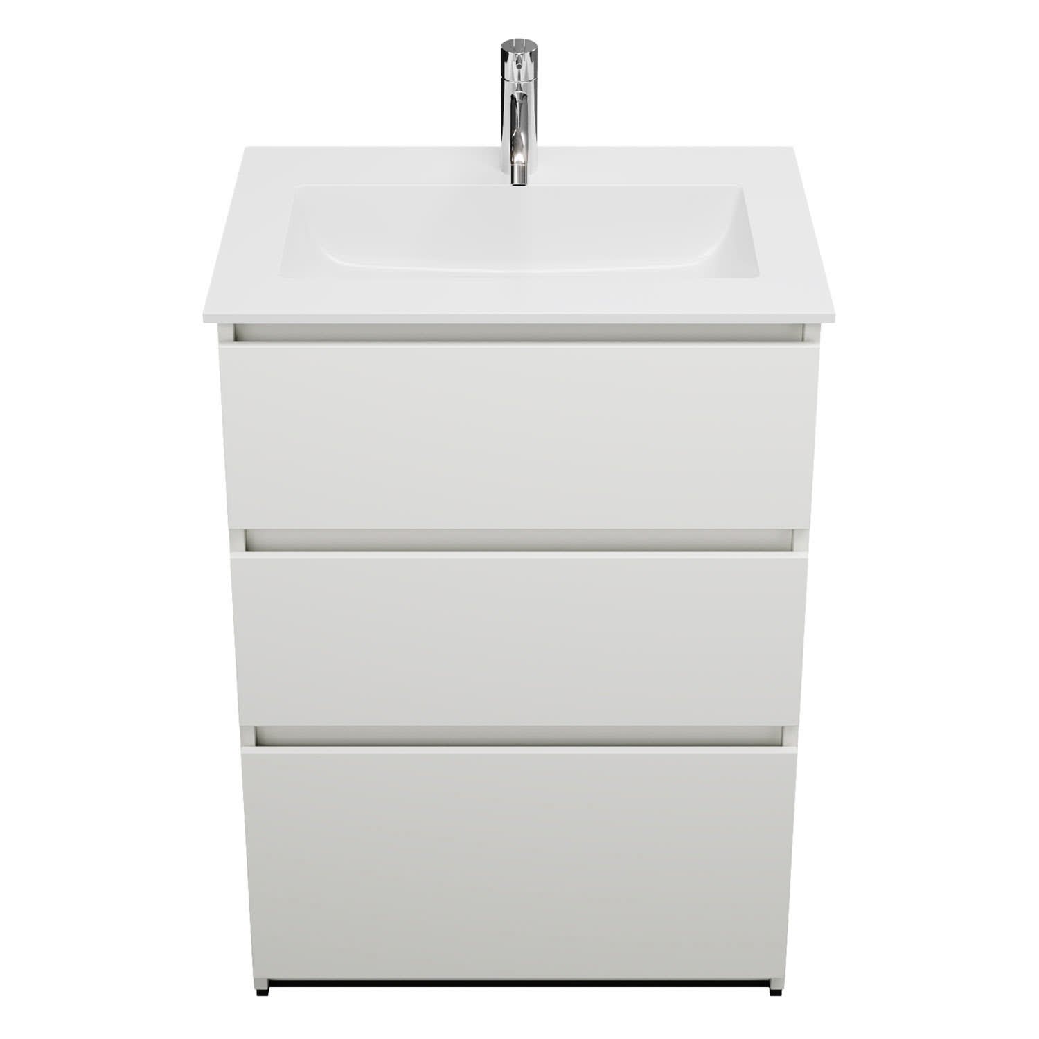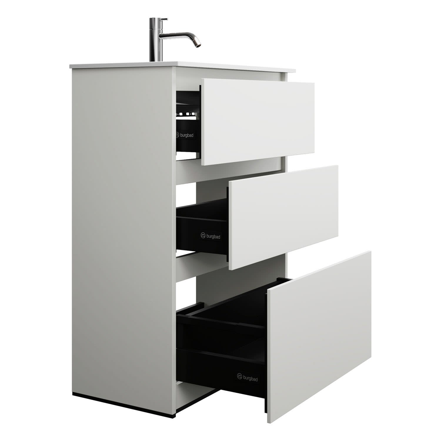 burgbad Lin20 Waschtischunterschrank mit Mineralguss-Waschtisch 62 cm, 3 Auszüge