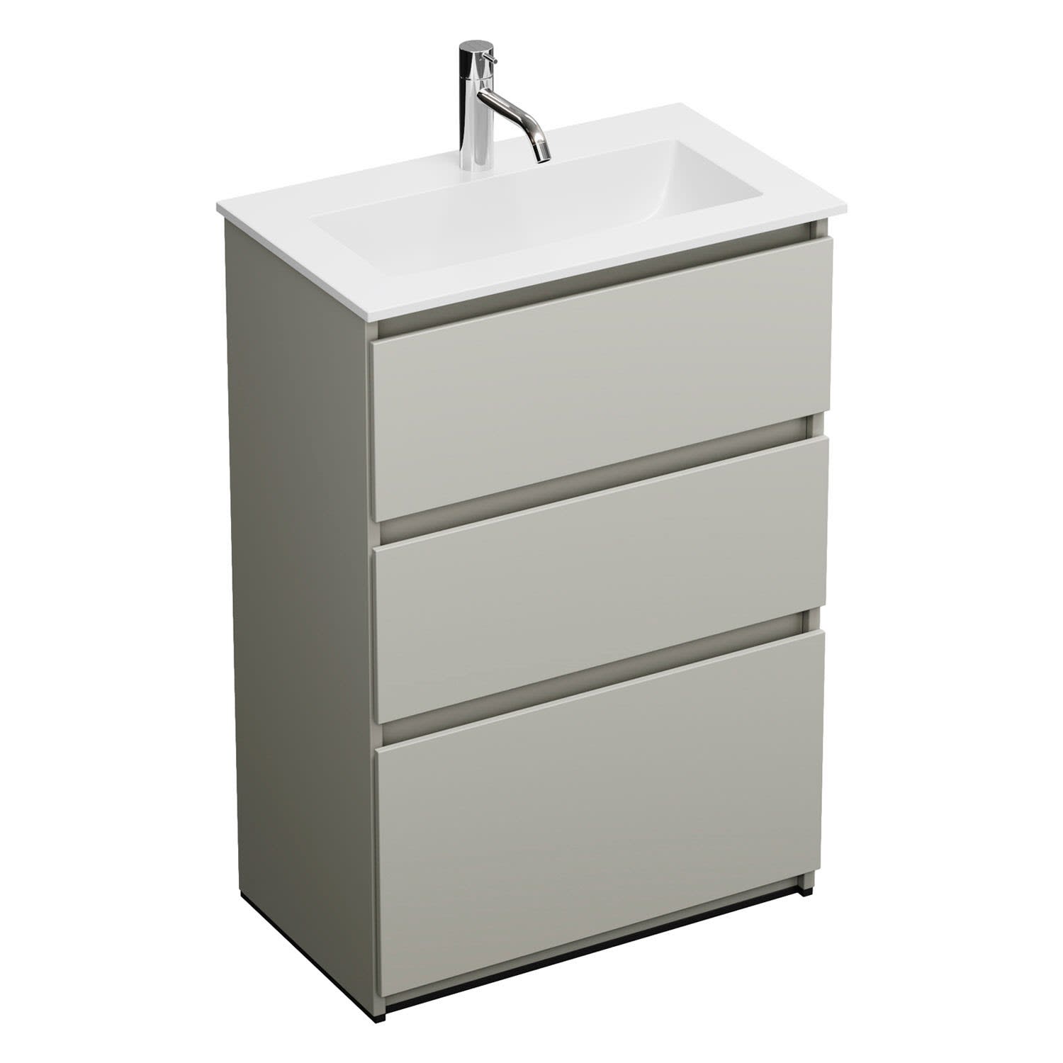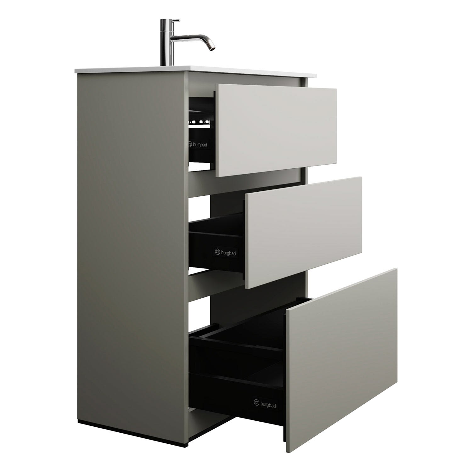 burgbad Lin20 Waschtischunterschrank mit Mineralguss-Waschtisch 62 cm, 3 Auszüge