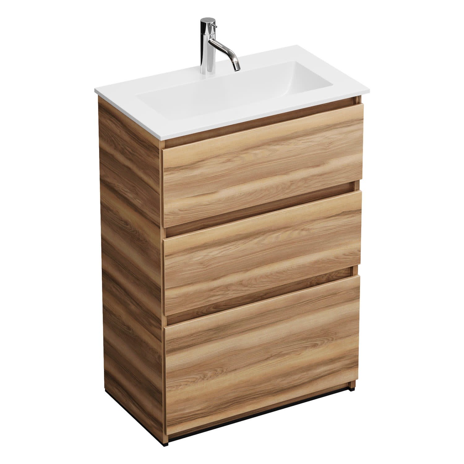 burgbad Lin20 Waschtischunterschrank mit Mineralguss-Waschtisch 62 cm, 3 Auszüge