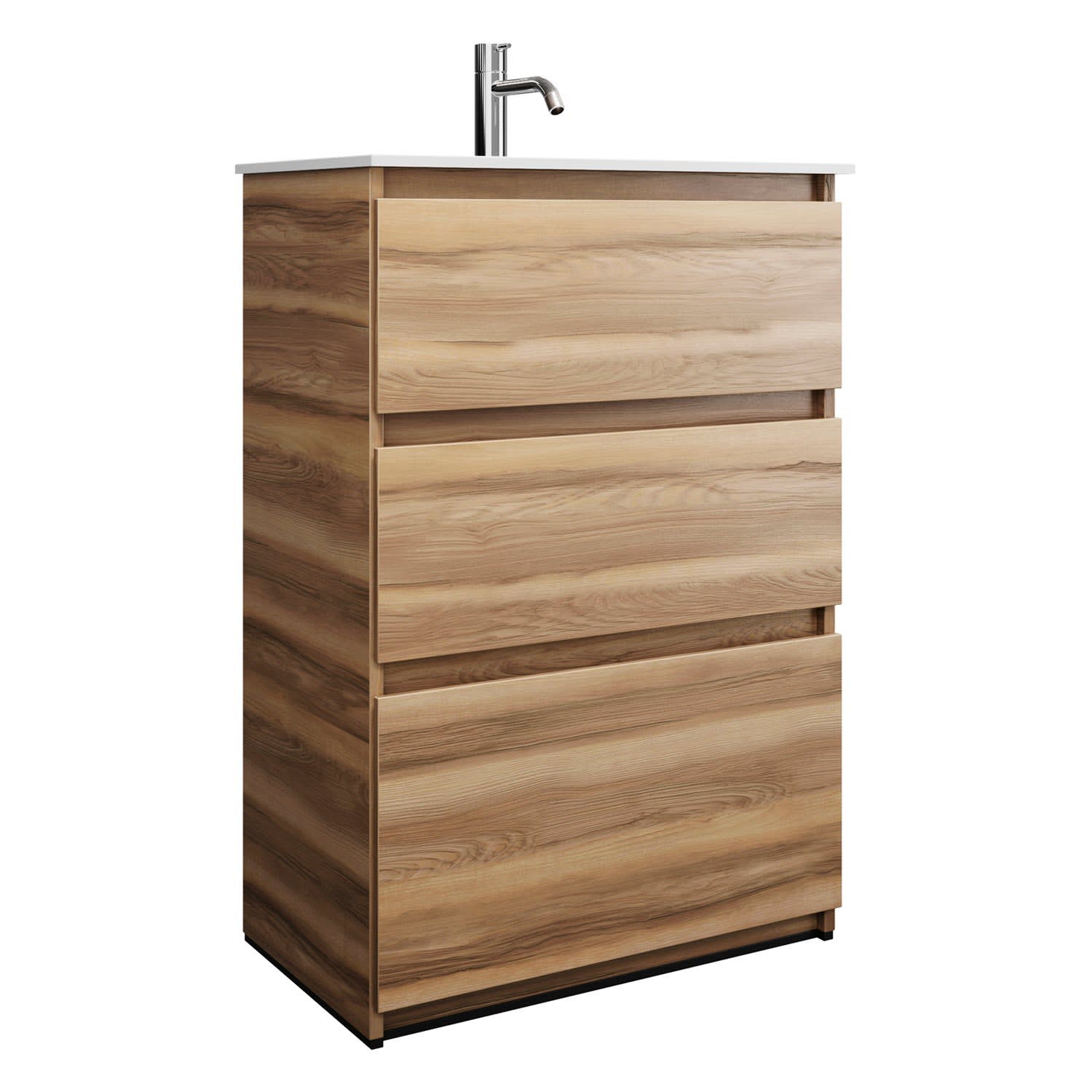 burgbad Lin20 Waschtischunterschrank mit Mineralguss-Waschtisch 62 cm, 3 Auszüge