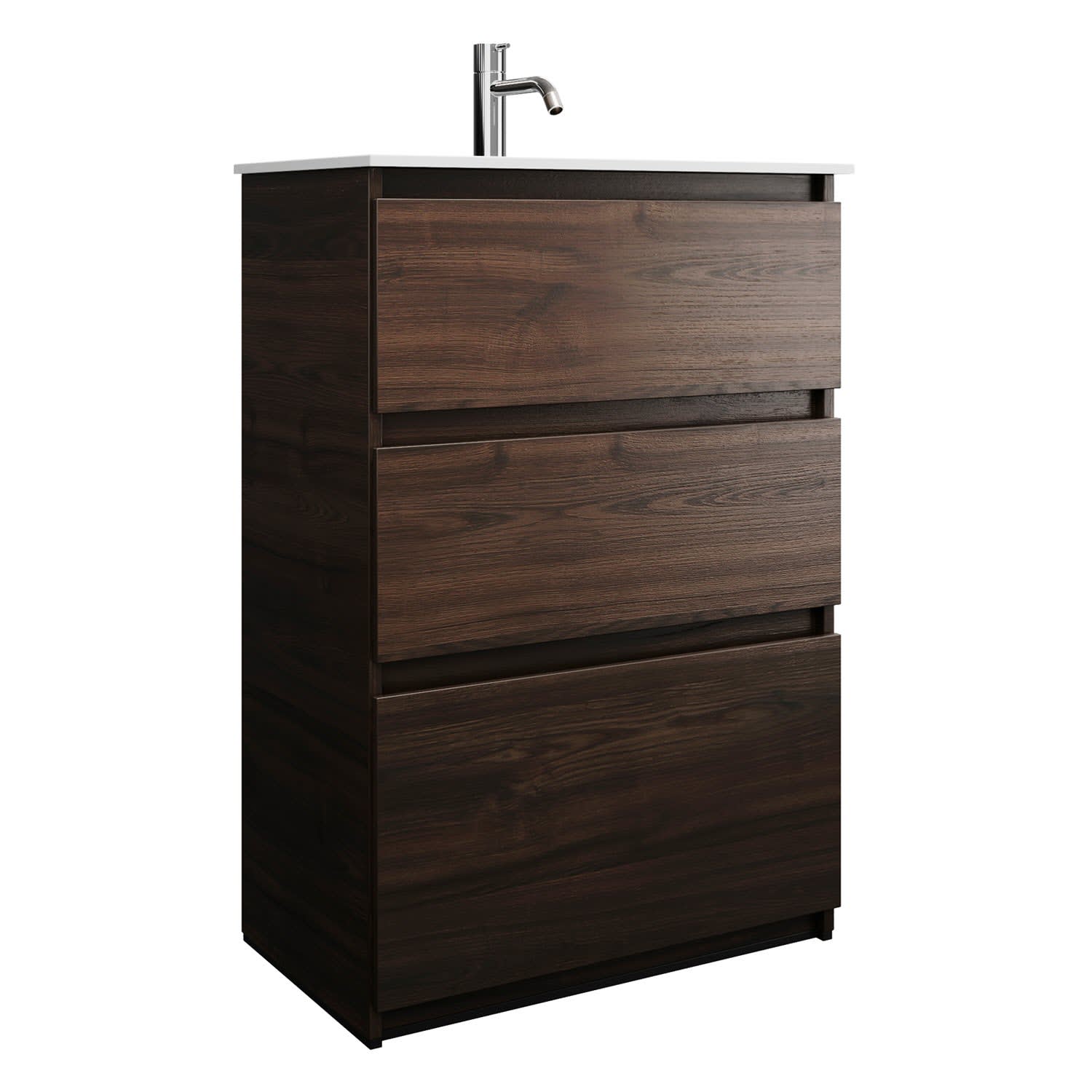 burgbad Lin20 Waschtischunterschrank mit Mineralguss-Waschtisch 62 cm, 3 Auszüge