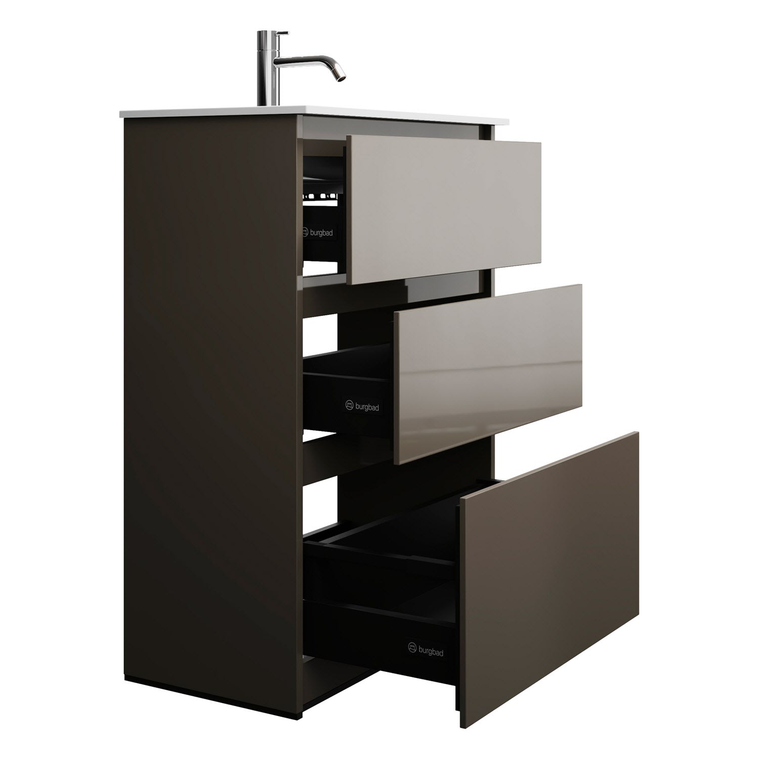 burgbad Lin20 Waschtischunterschrank mit Mineralguss-Waschtisch 62 cm, 3 Auszüge
