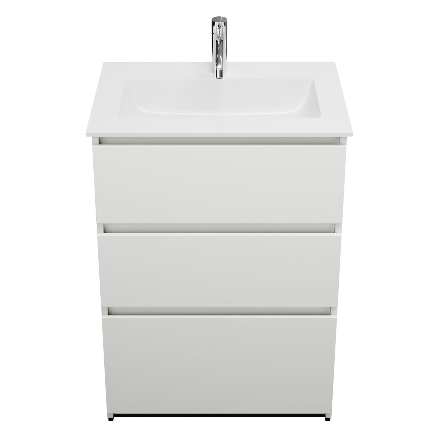 burgbad Lin20 Waschtischunterschrank mit Mineralguss-Waschtisch 62 cm, 3 Auszüge
