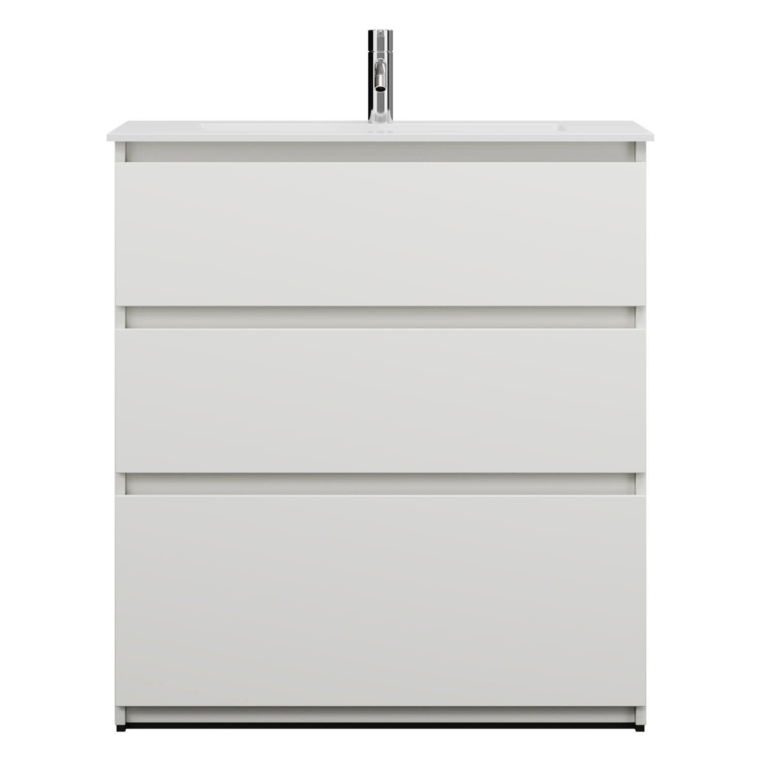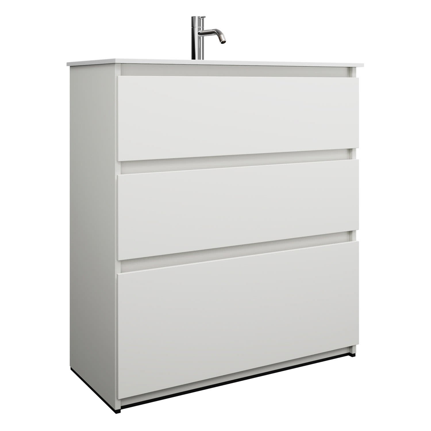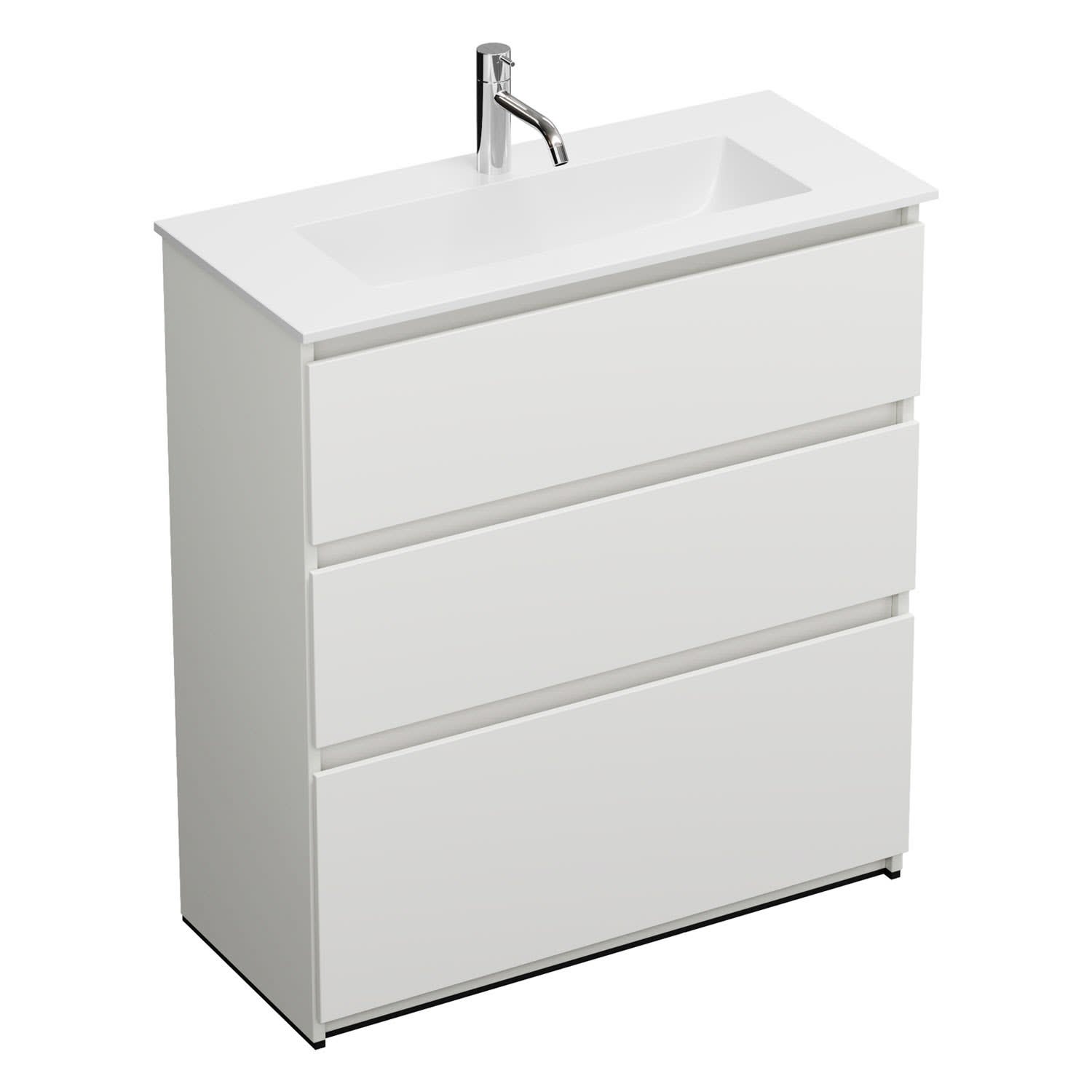 burgbad Lin20 Waschtischunterschrank mit Mineralguss-Waschtisch 82 cm, 3 Auszüge
