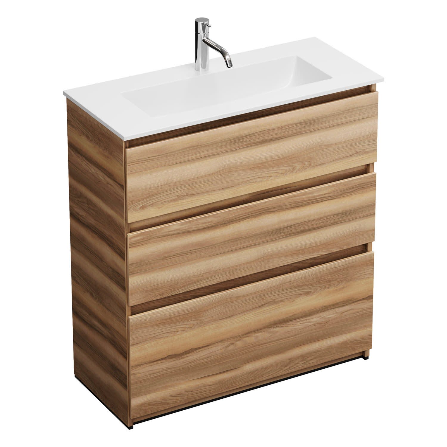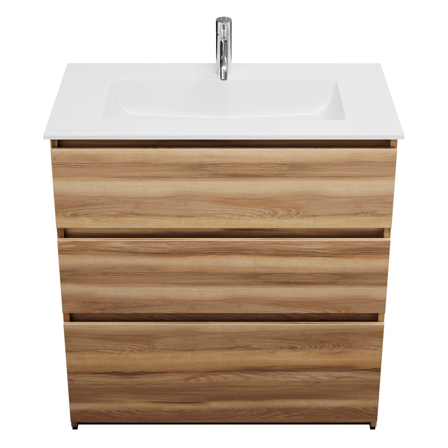 burgbad Lin20 Waschtischunterschrank mit Mineralguss-Waschtisch 82 cm, 3 Auszüge