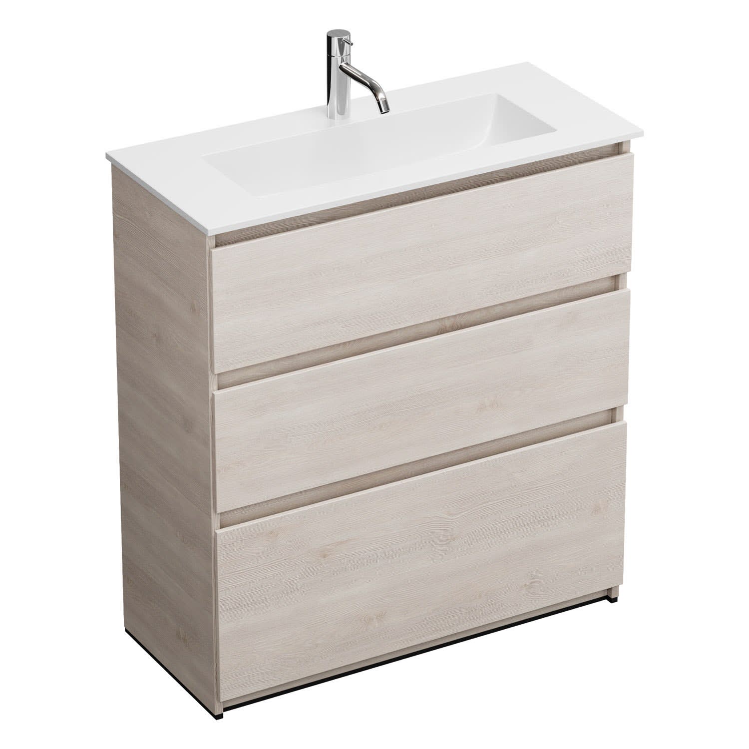 burgbad Lin20 Waschtischunterschrank mit Mineralguss-Waschtisch 82 cm, 3 Auszüge