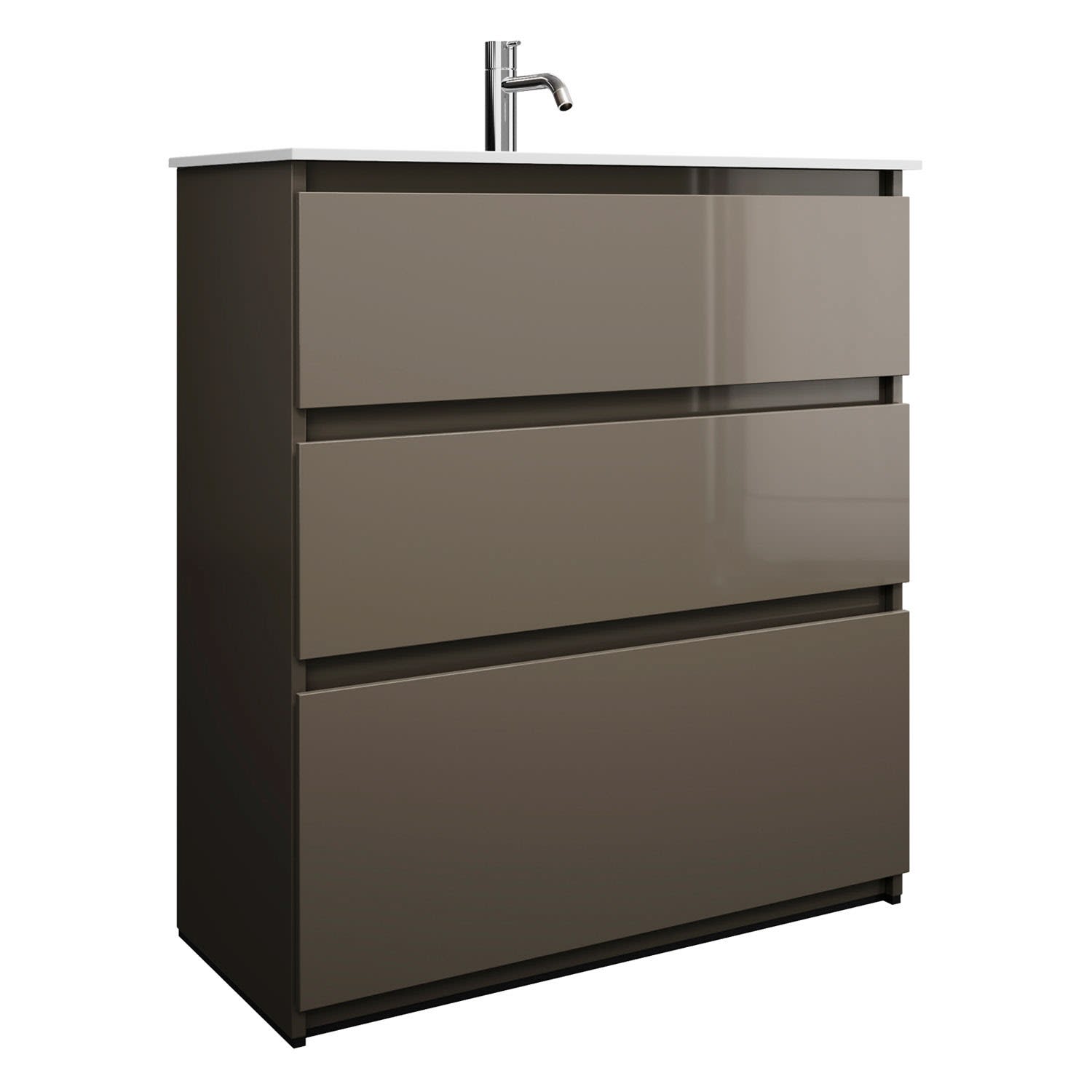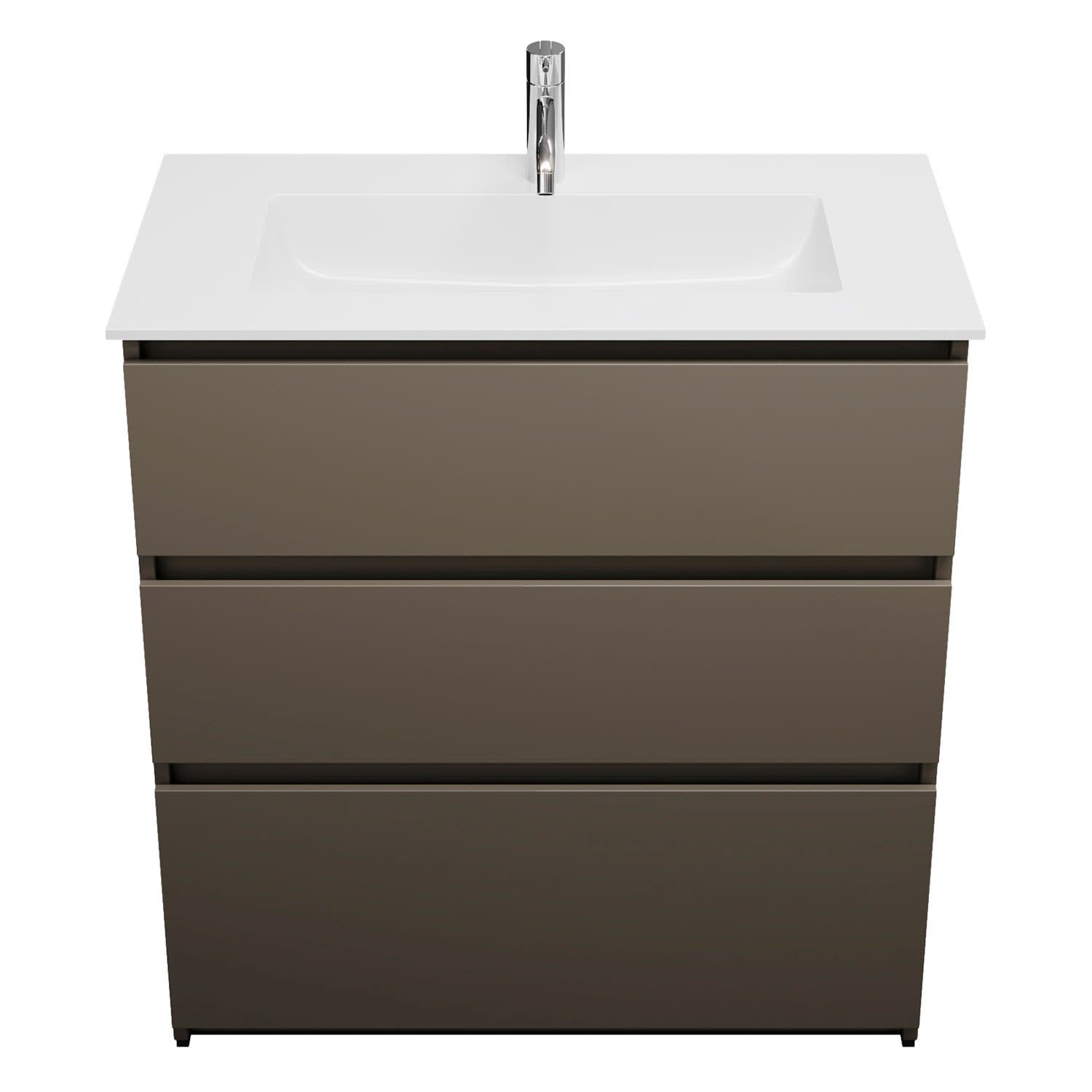 burgbad Lin20 Waschtischunterschrank mit Mineralguss-Waschtisch 82 cm, 3 Auszüge