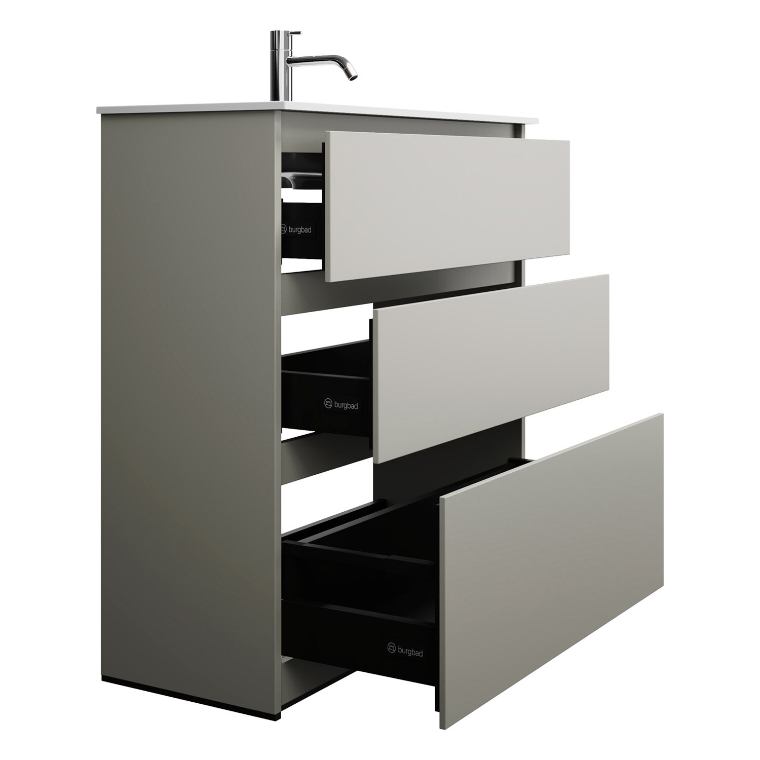 burgbad Lin20 Waschtischunterschrank mit Mineralguss-Waschtisch 82 cm, 3 Auszüge