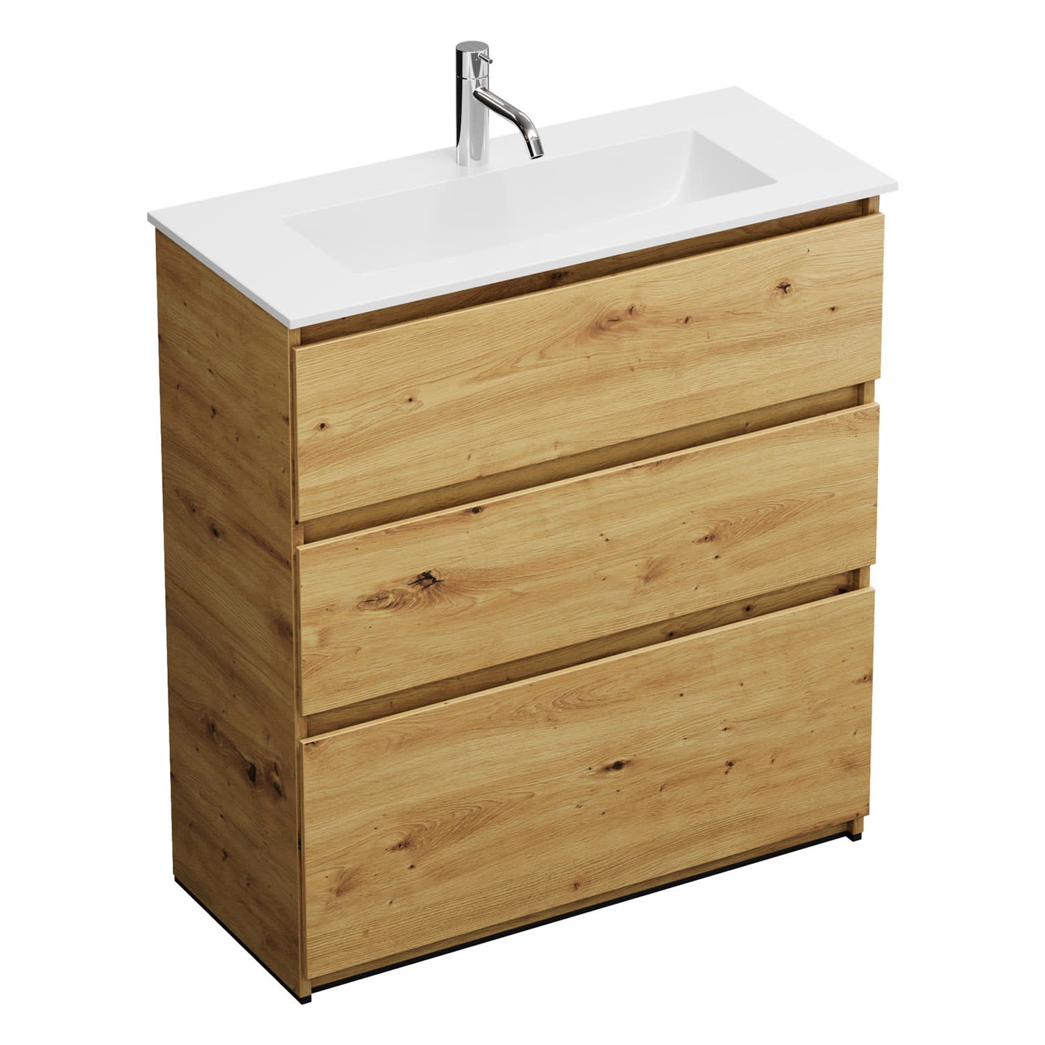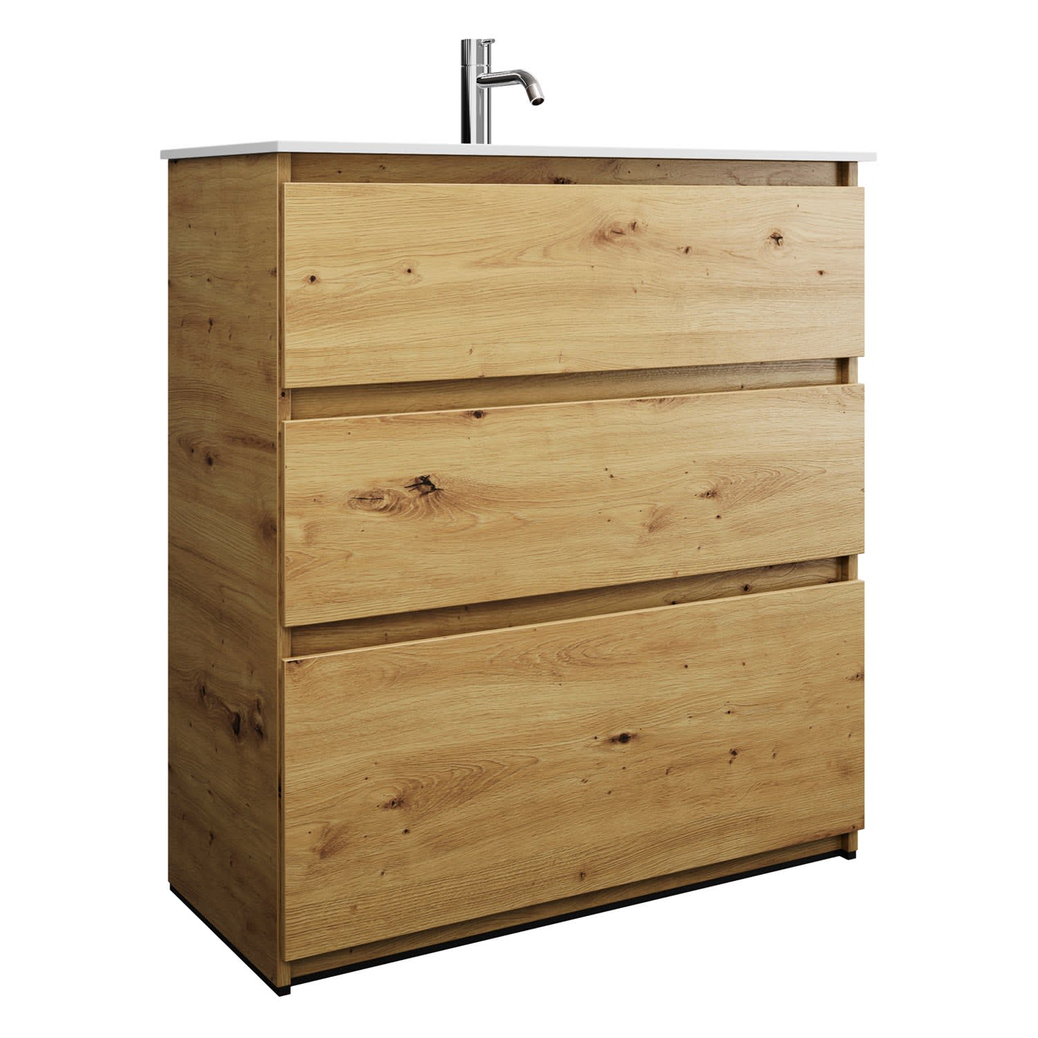 burgbad Lin20 Waschtischunterschrank mit Mineralguss-Waschtisch 82 cm, 3 Auszüge