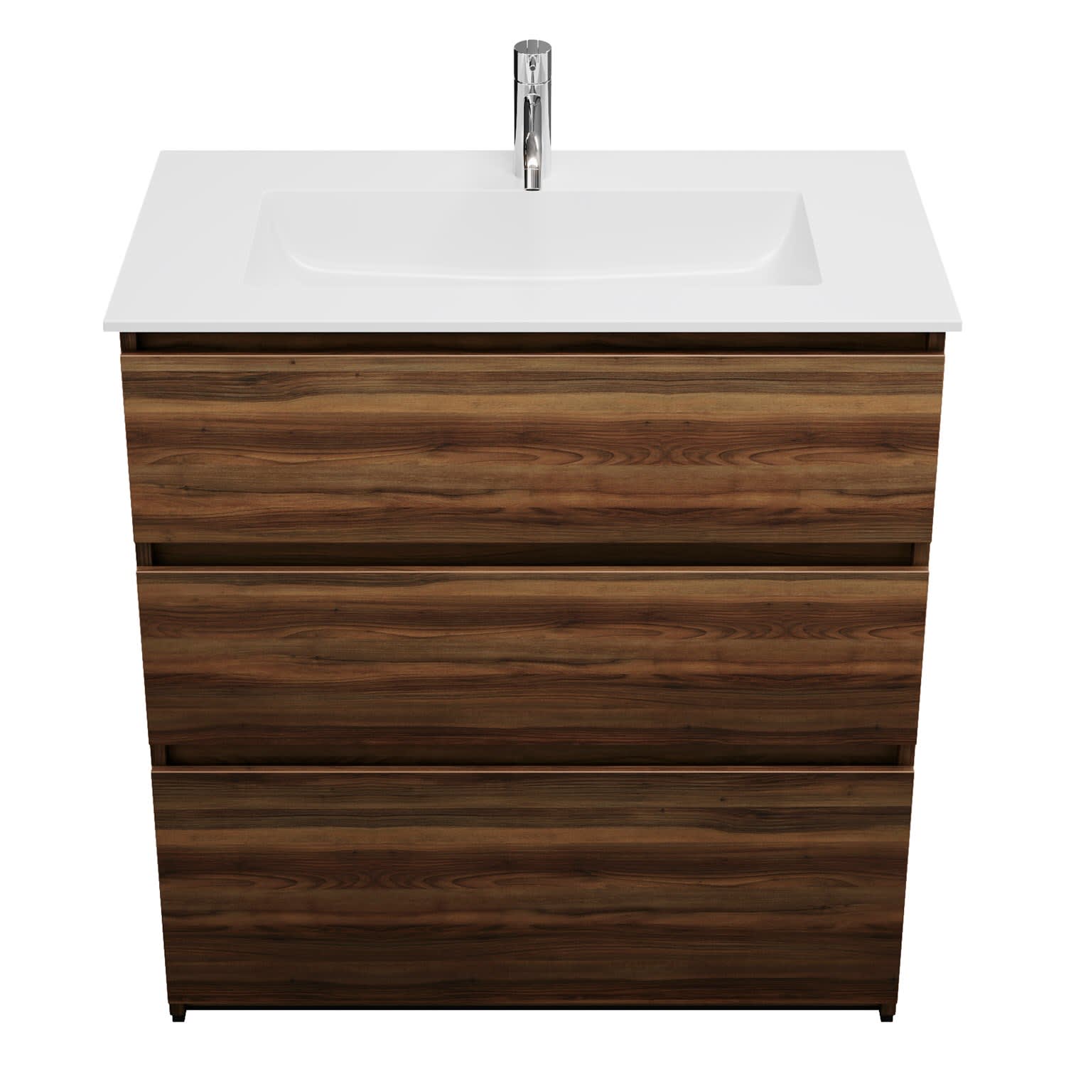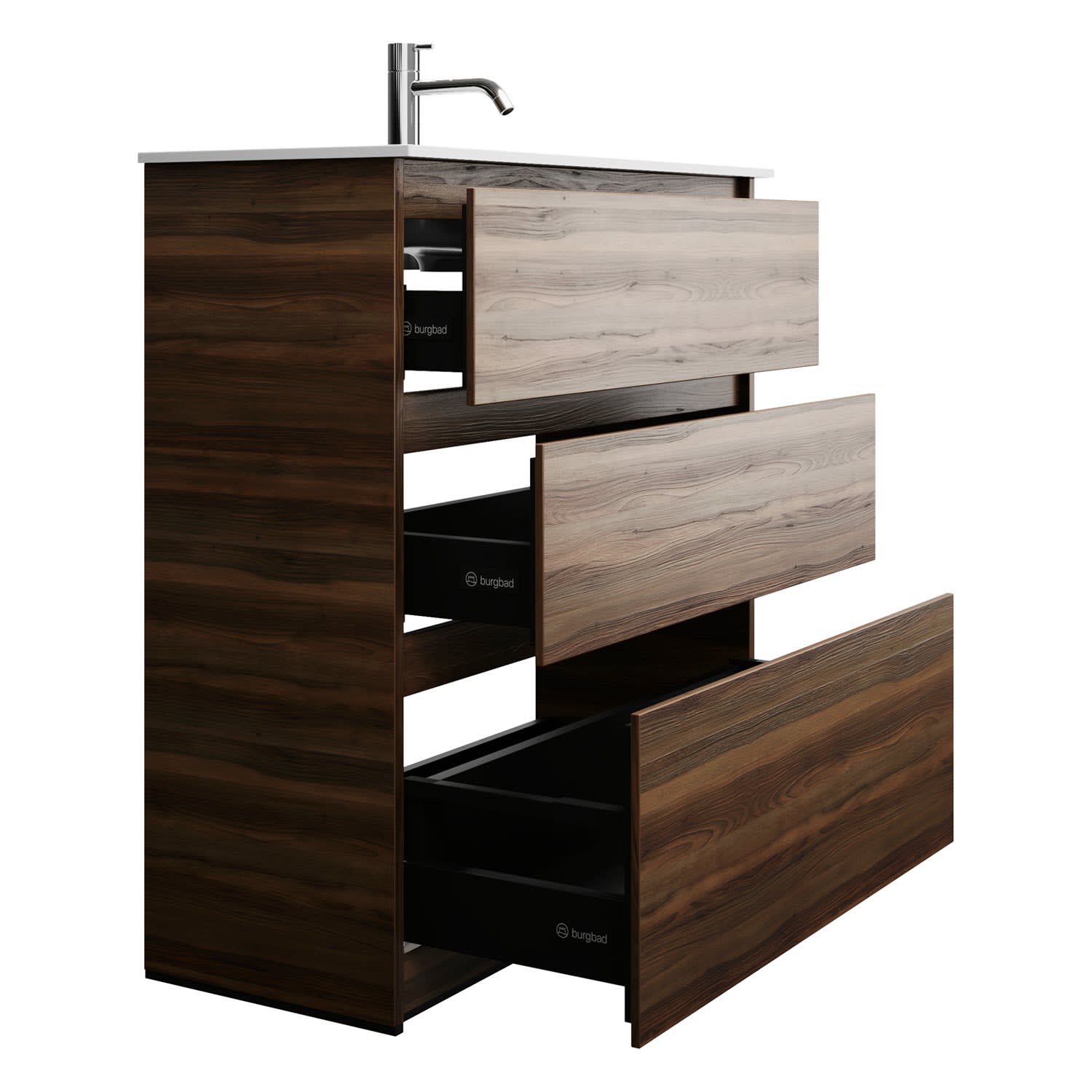 burgbad Lin20 Waschtischunterschrank mit Mineralguss-Waschtisch 82 cm, 3 Auszüge