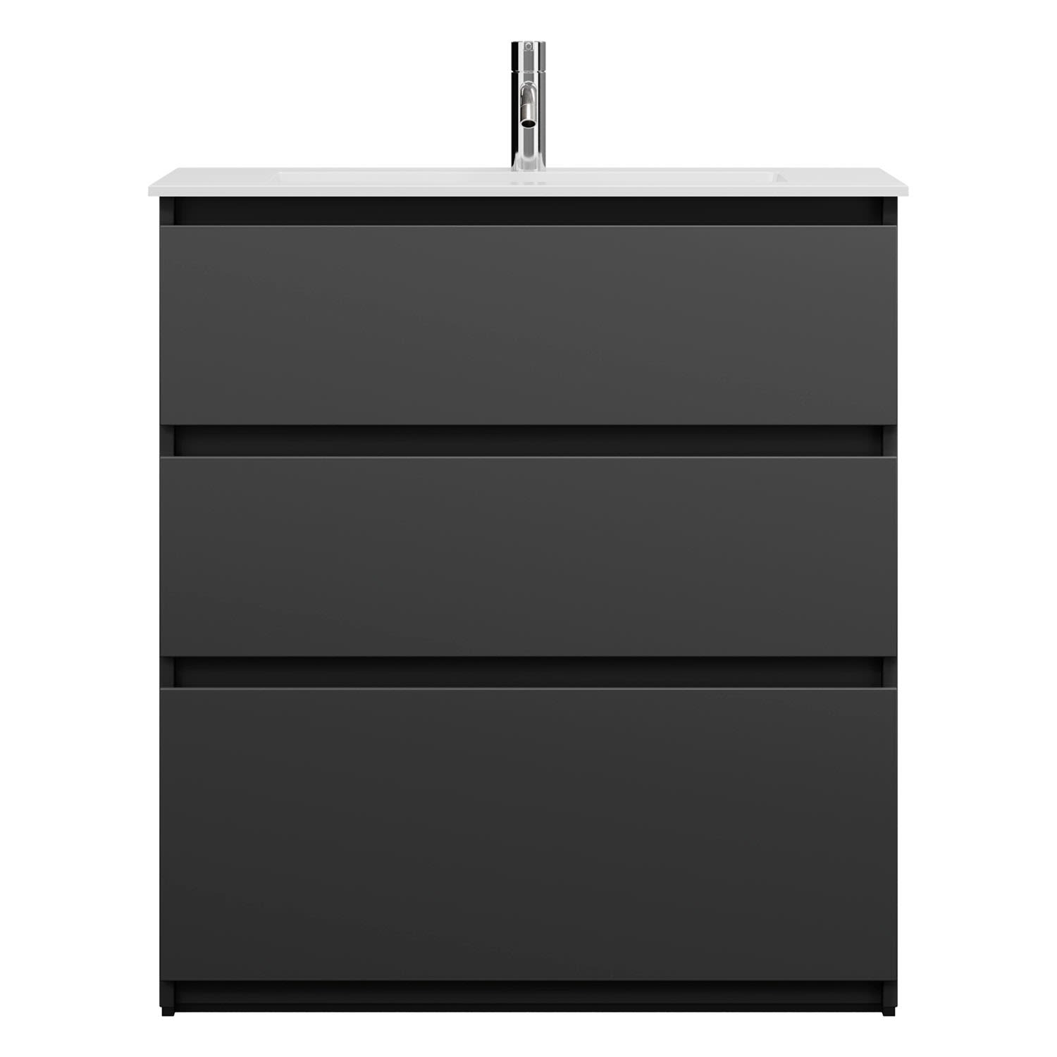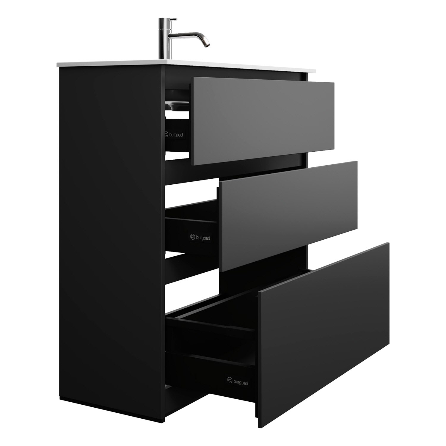 burgbad Lin20 Waschtischunterschrank mit Mineralguss-Waschtisch 82 cm, 3 Auszüge