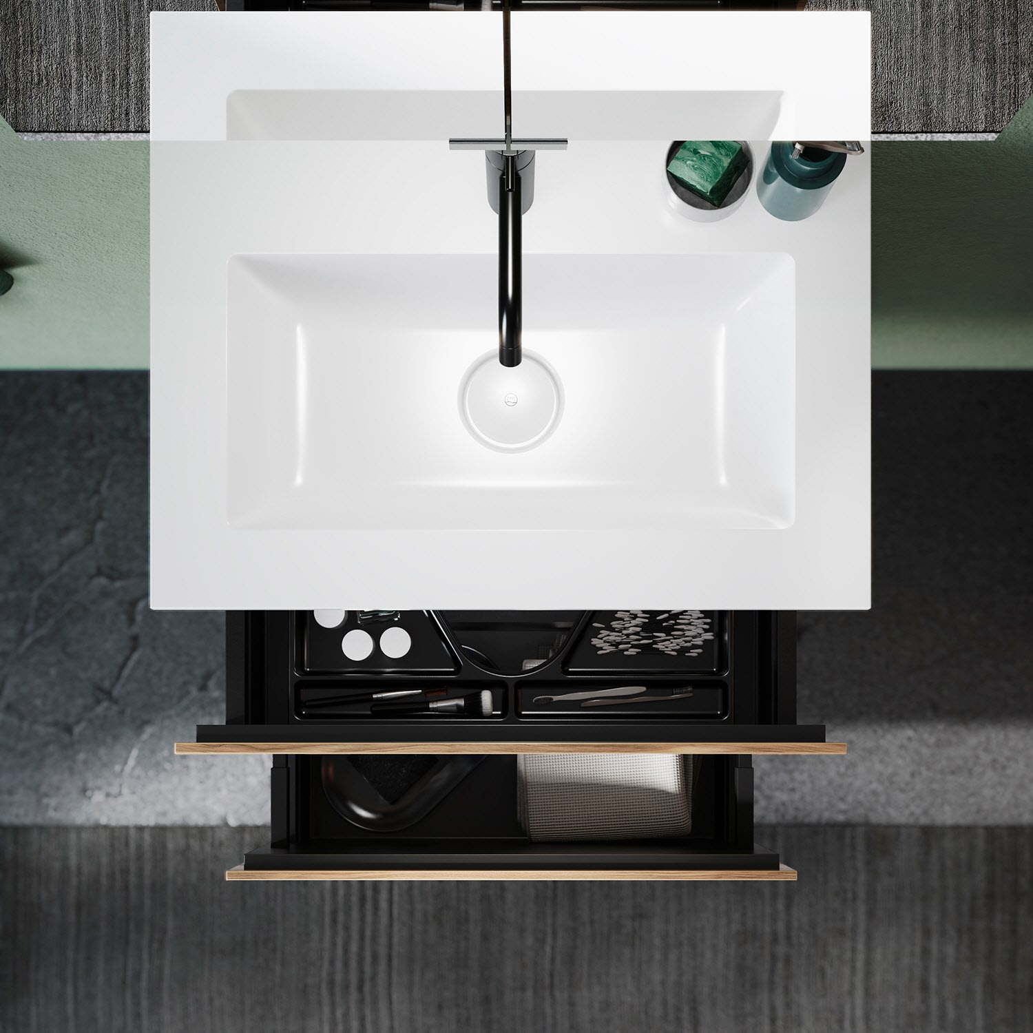 burgbad Lin20 Waschtischunterschrank mit Mineralguss-Waschtisch 62 cm, 2 Auszüge