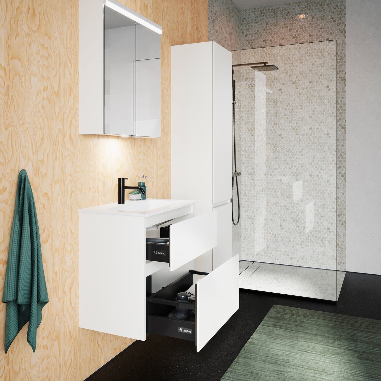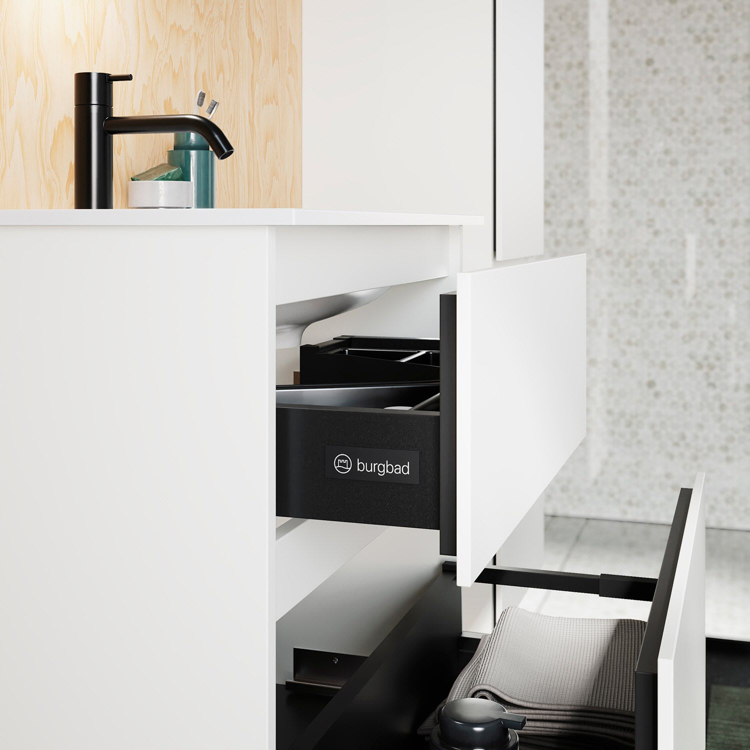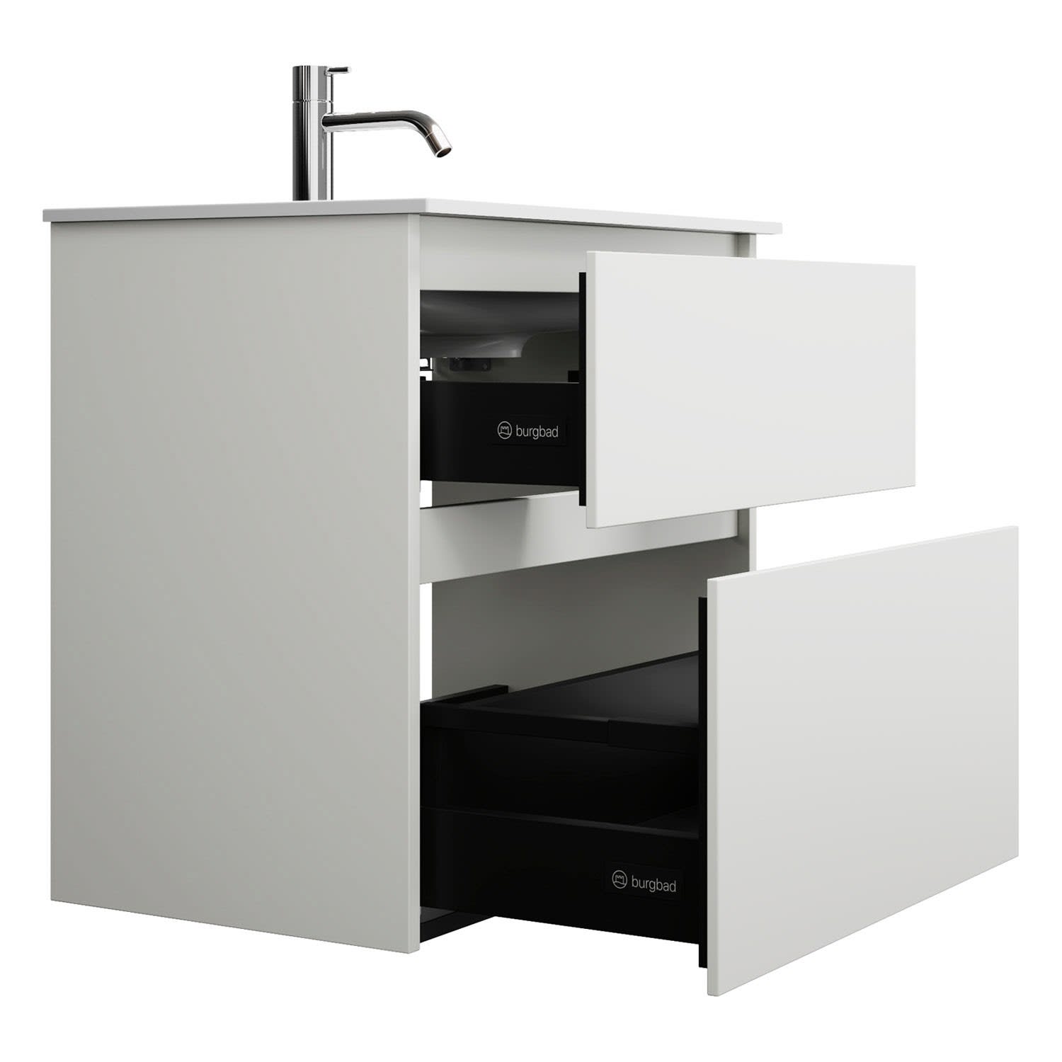 burgbad Lin20 Waschtischunterschrank mit Mineralguss-Waschtisch 62 cm, 2 Auszüge