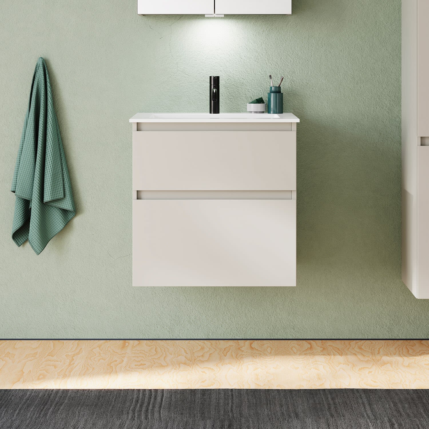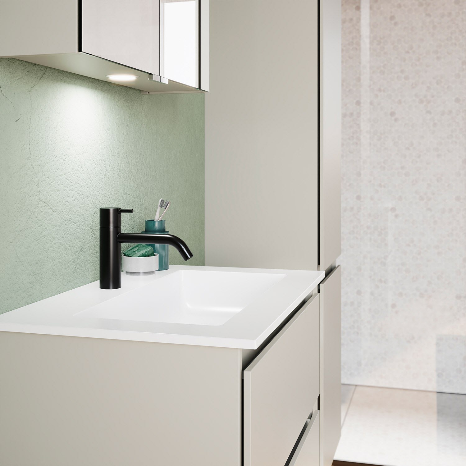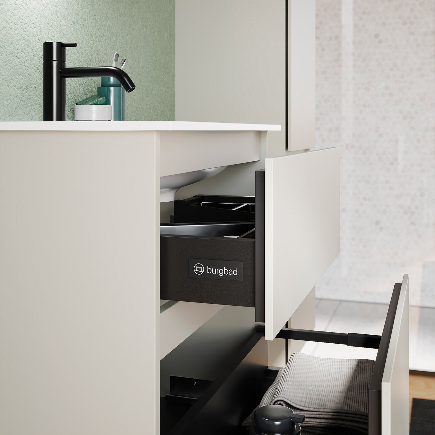 burgbad Lin20 Waschtischunterschrank mit Mineralguss-Waschtisch 62 cm, 2 Auszüge