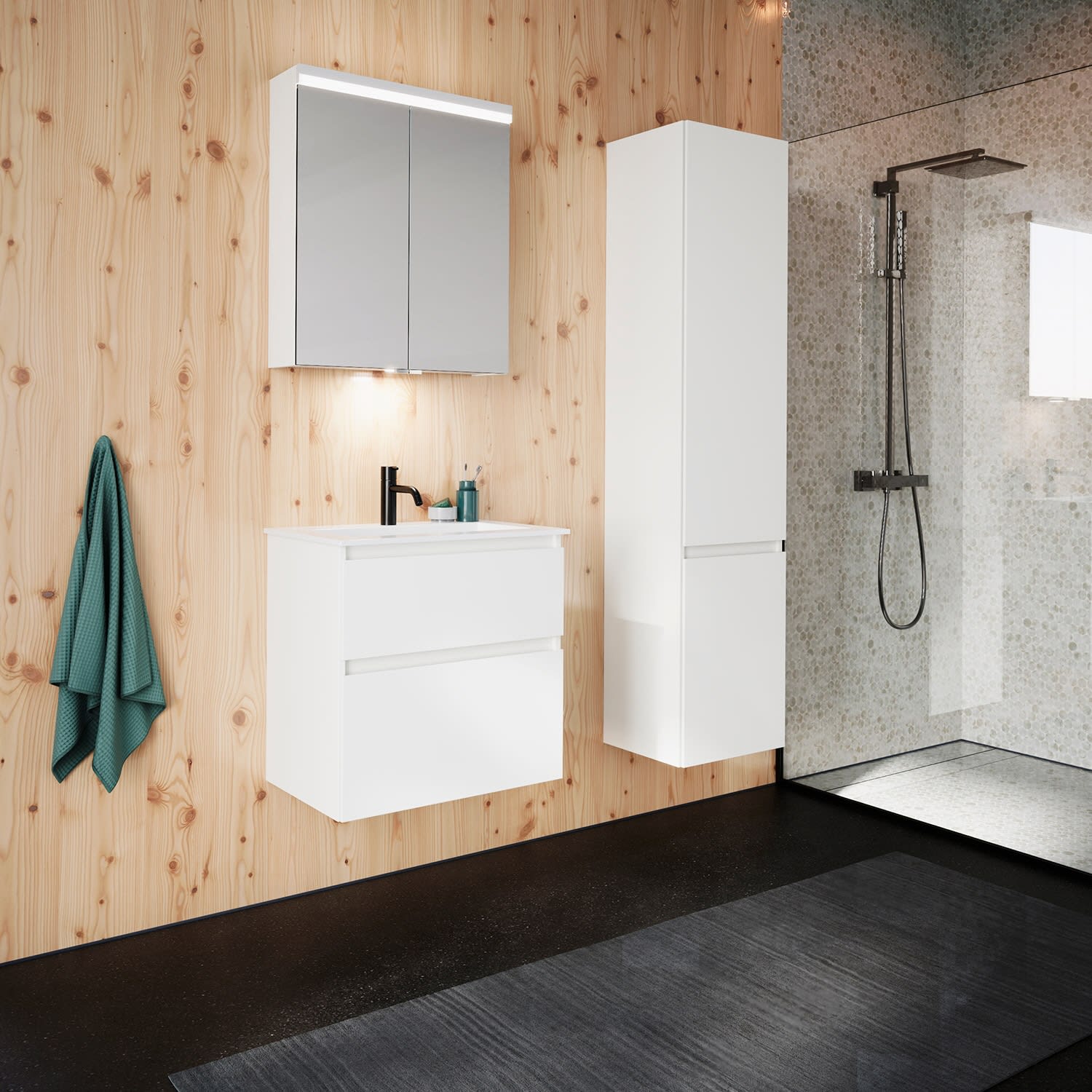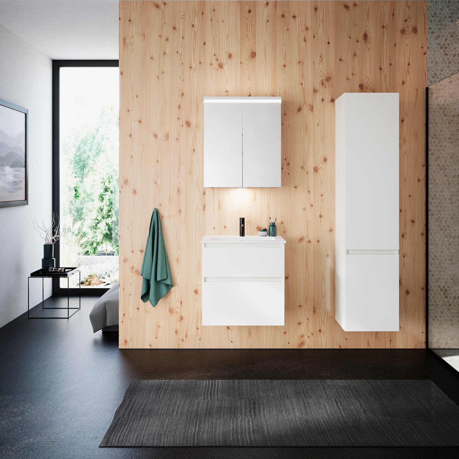 burgbad Lin20 Waschtischunterschrank mit Mineralguss-Waschtisch 62 cm, 2 Auszüge