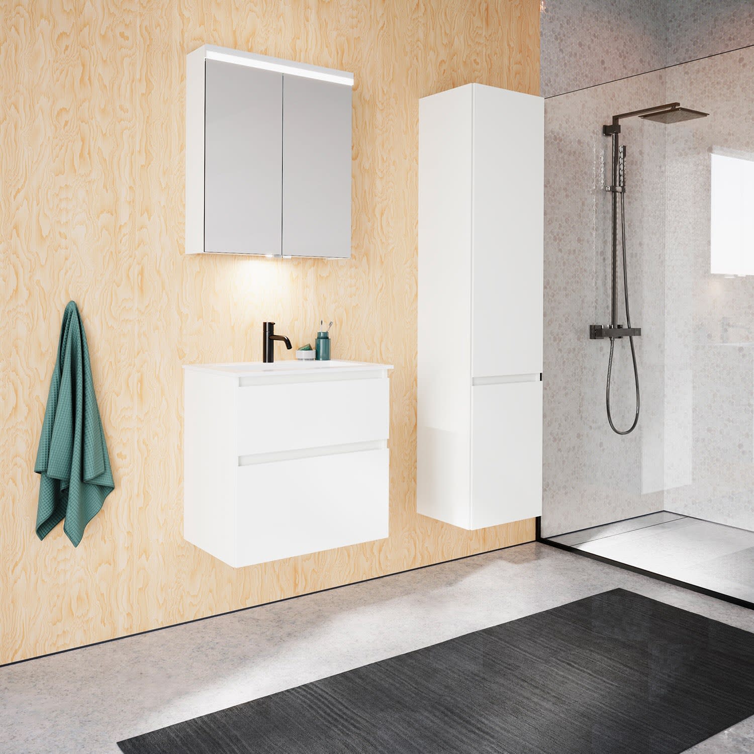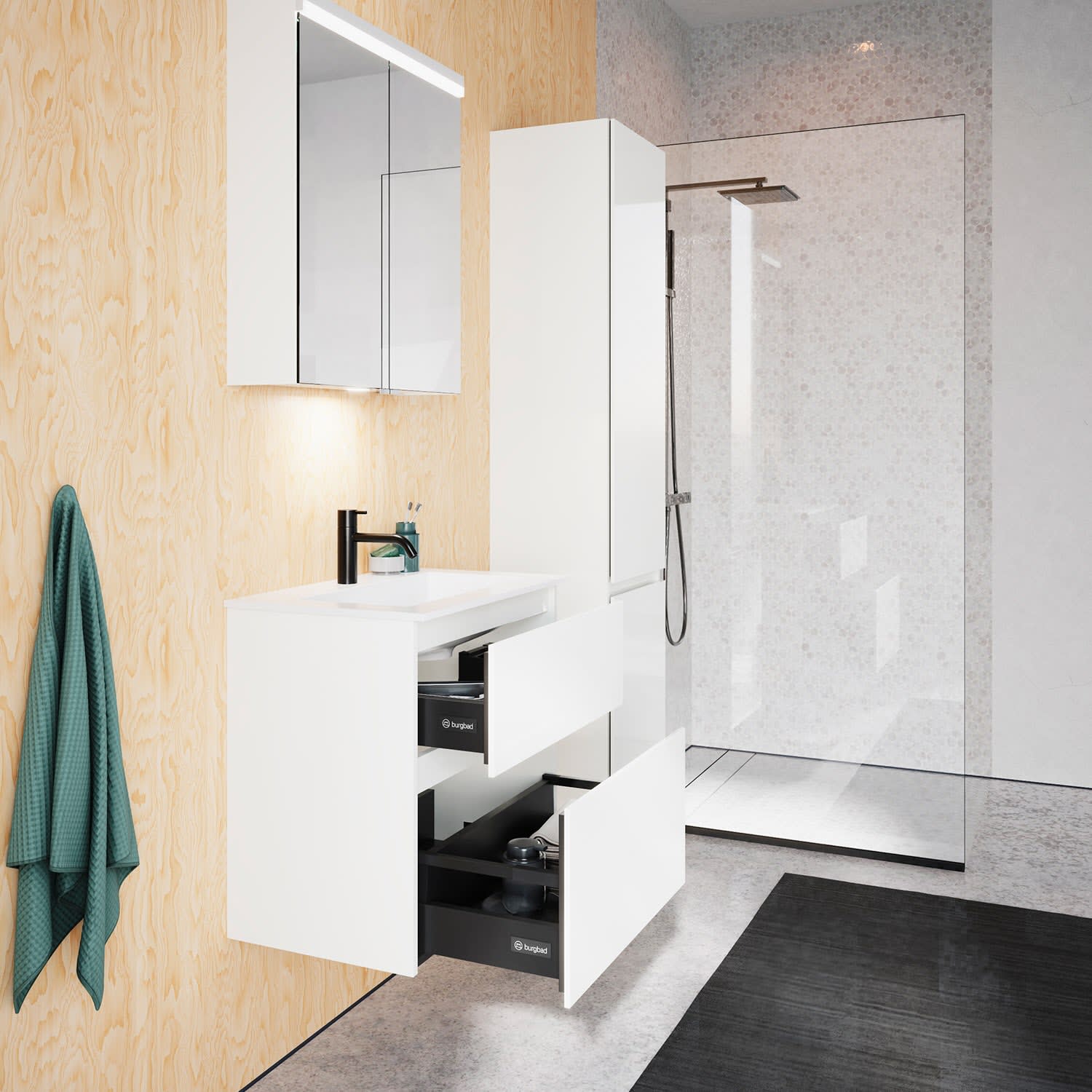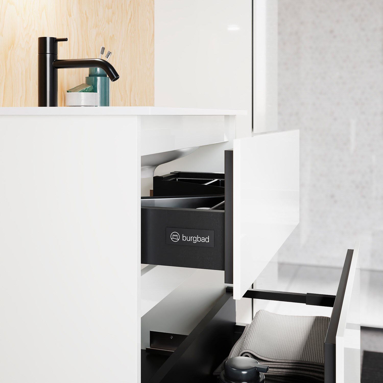 burgbad Lin20 Waschtischunterschrank mit Mineralguss-Waschtisch 62 cm, 2 Auszüge