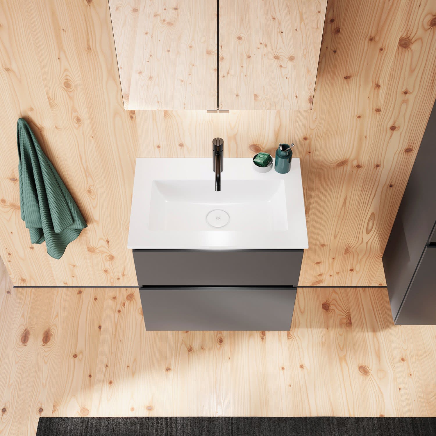 burgbad Lin20 Waschtischunterschrank mit Mineralguss-Waschtisch 62 cm, 2 Auszüge