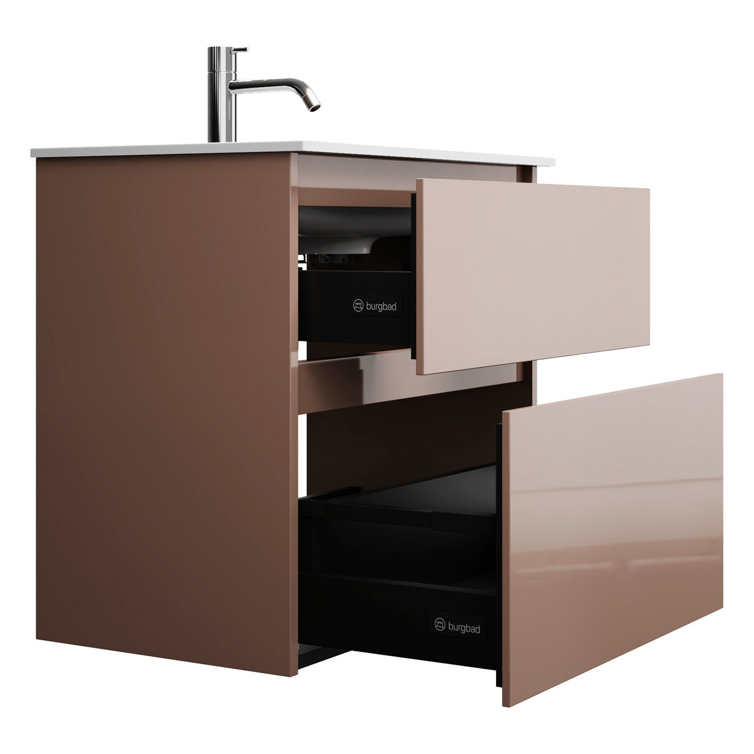 burgbad Lin20 Waschtischunterschrank mit Mineralguss-Waschtisch 62 cm, 2 Auszüge