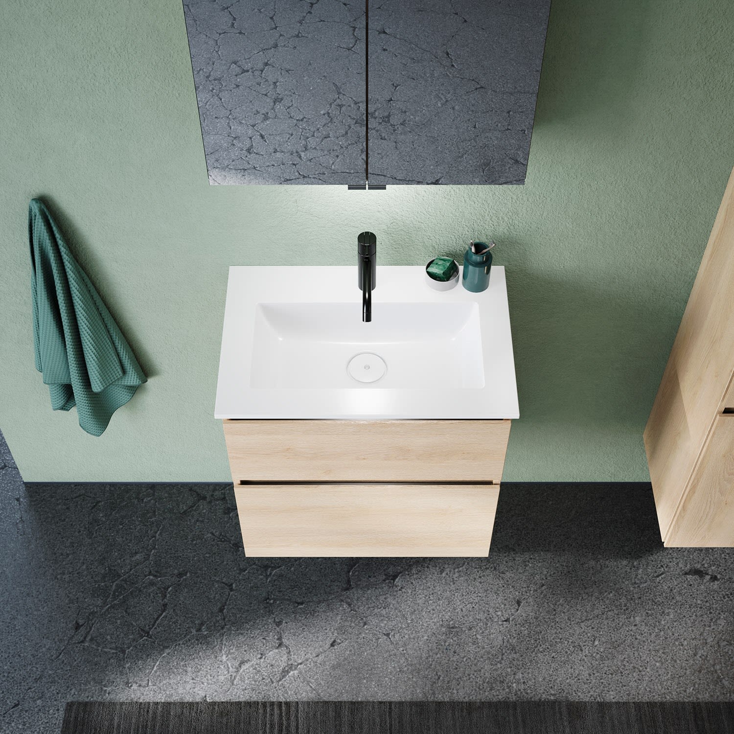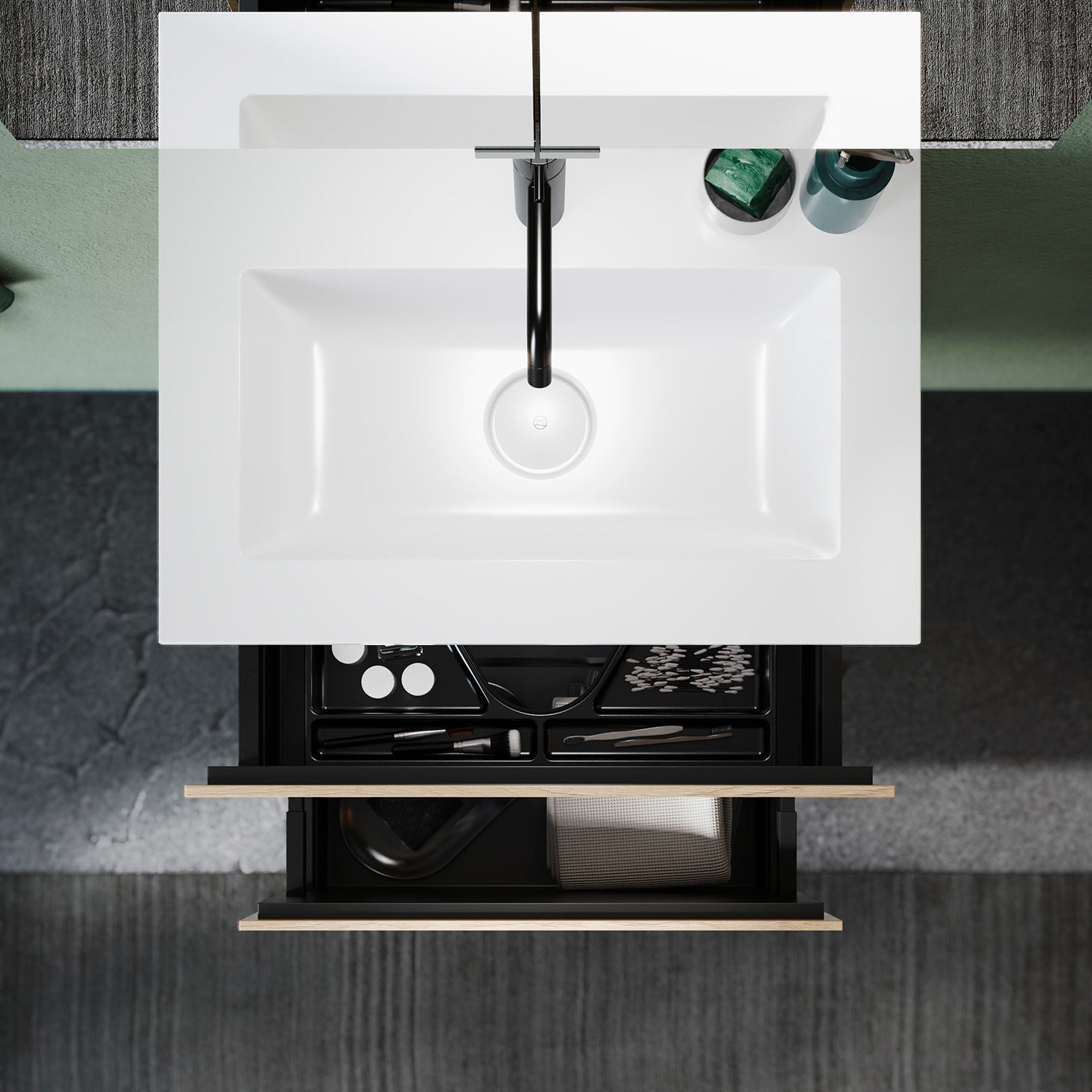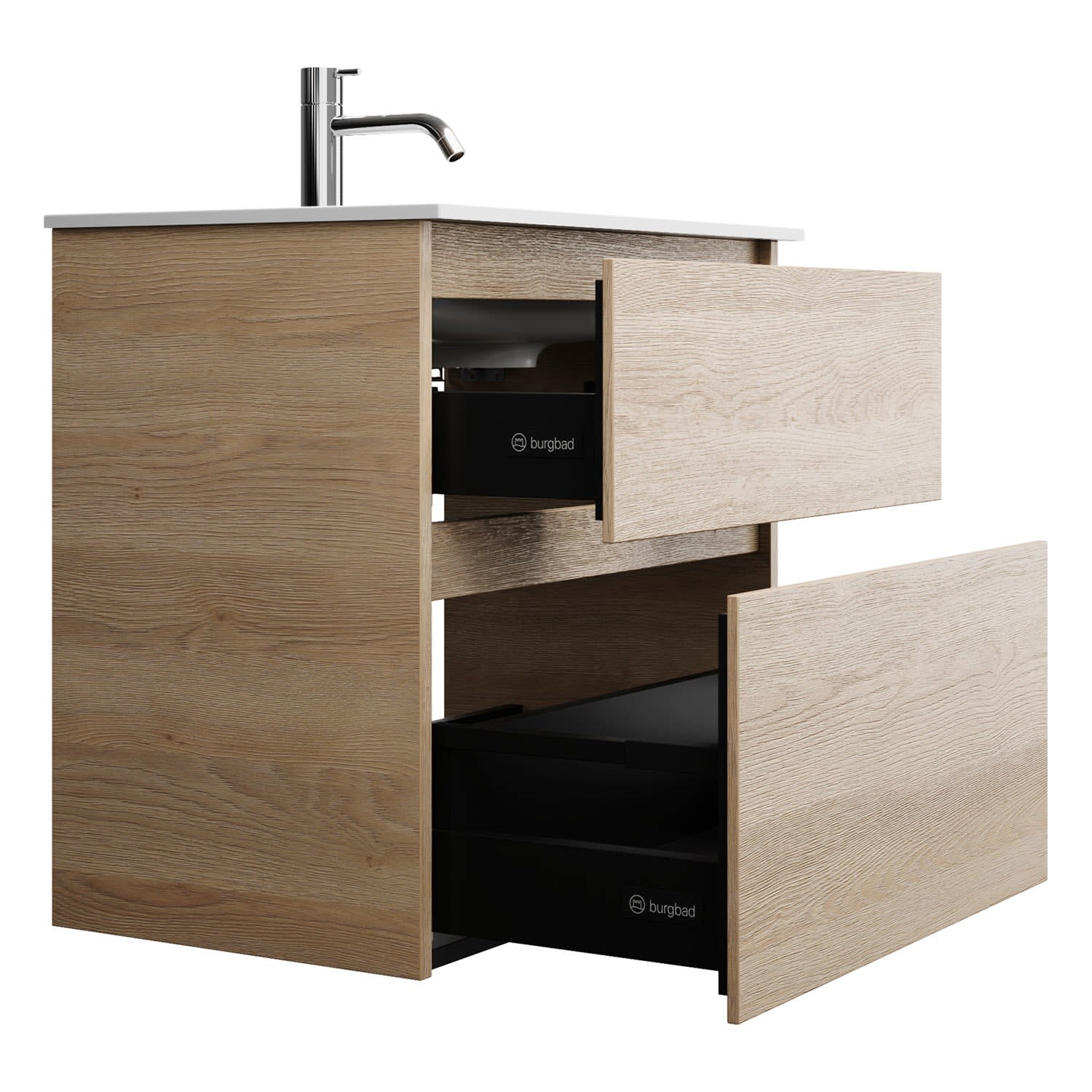 burgbad Lin20 Waschtischunterschrank mit Mineralguss-Waschtisch 62 cm, 2 Auszüge