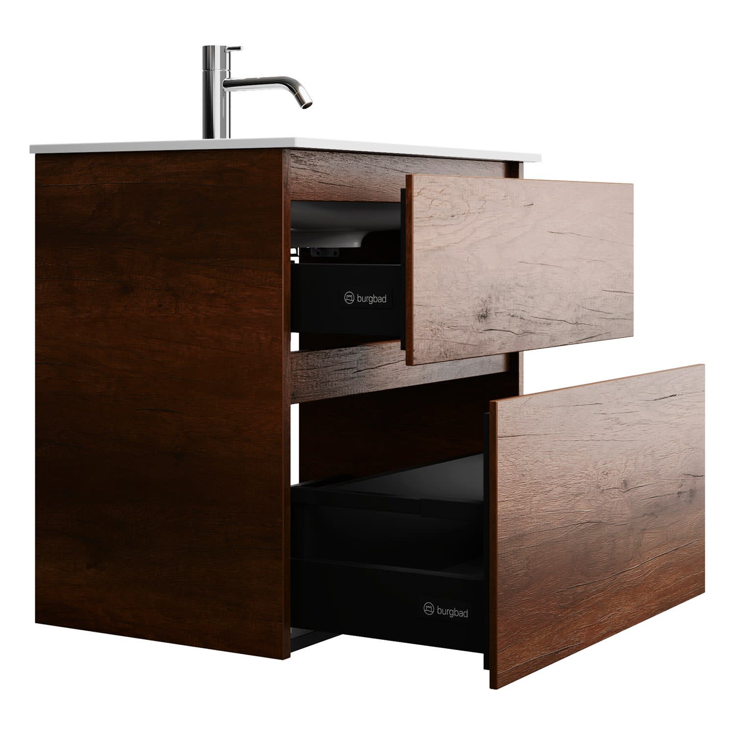 burgbad Lin20 Waschtischunterschrank mit Mineralguss-Waschtisch 62 cm, 2 Auszüge
