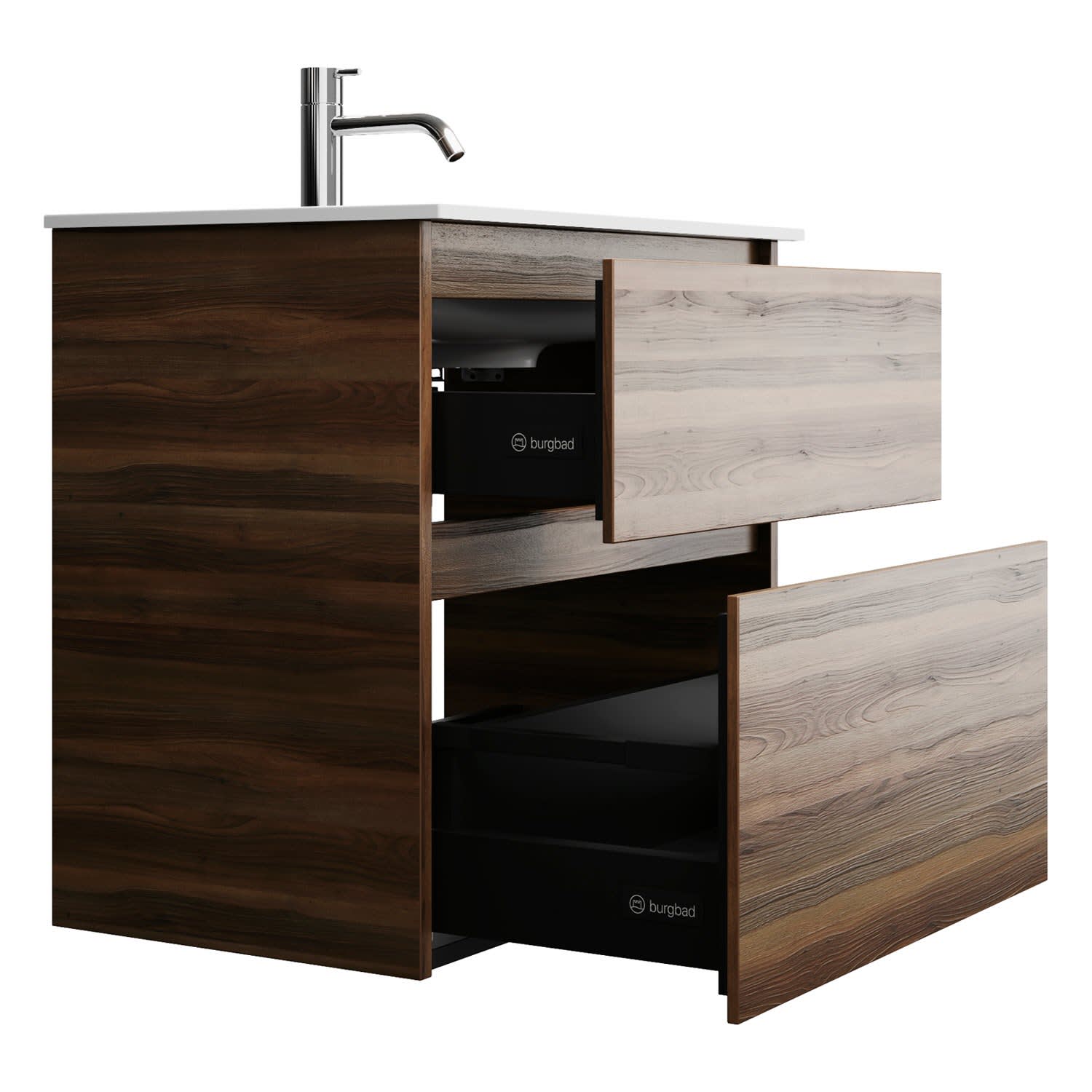 burgbad Lin20 Waschtischunterschrank mit Mineralguss-Waschtisch 62 cm, 2 Auszüge