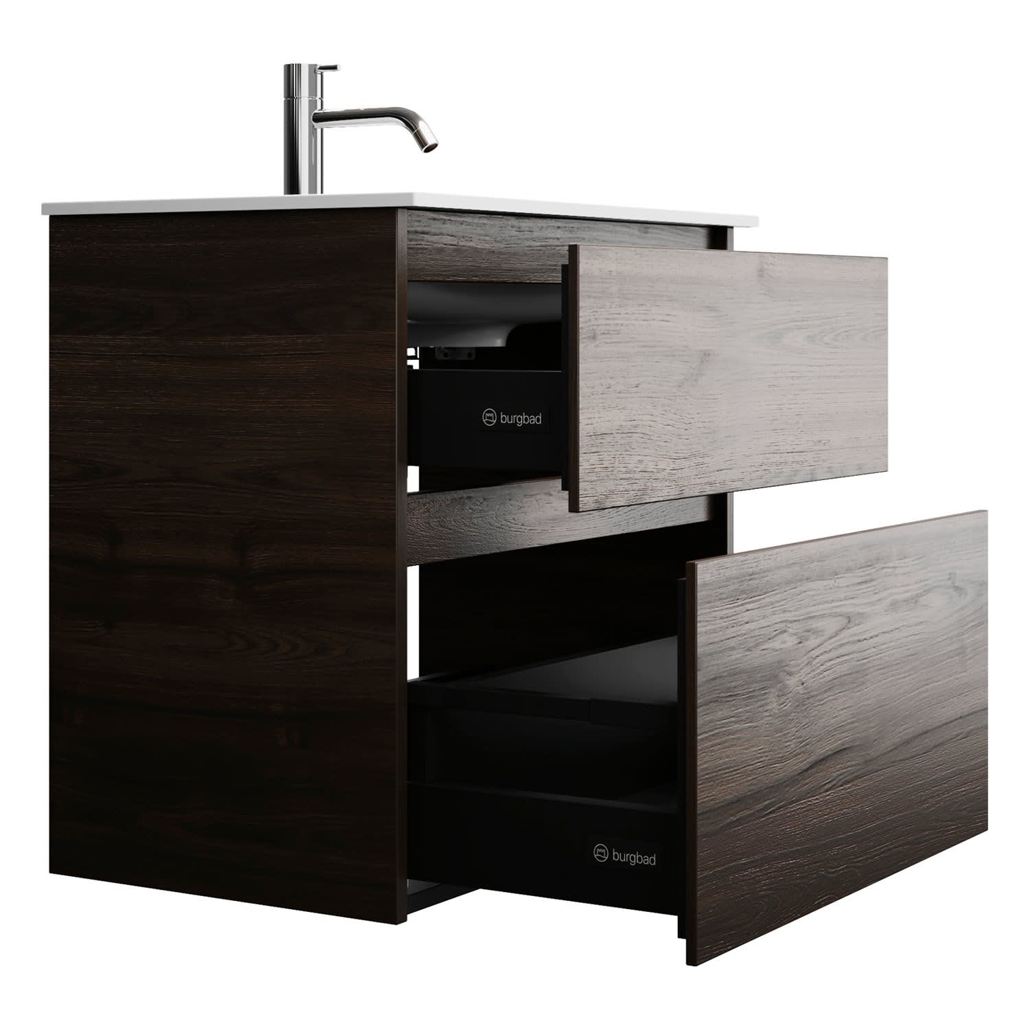 burgbad Lin20 Waschtischunterschrank mit Mineralguss-Waschtisch 62 cm, 2 Auszüge