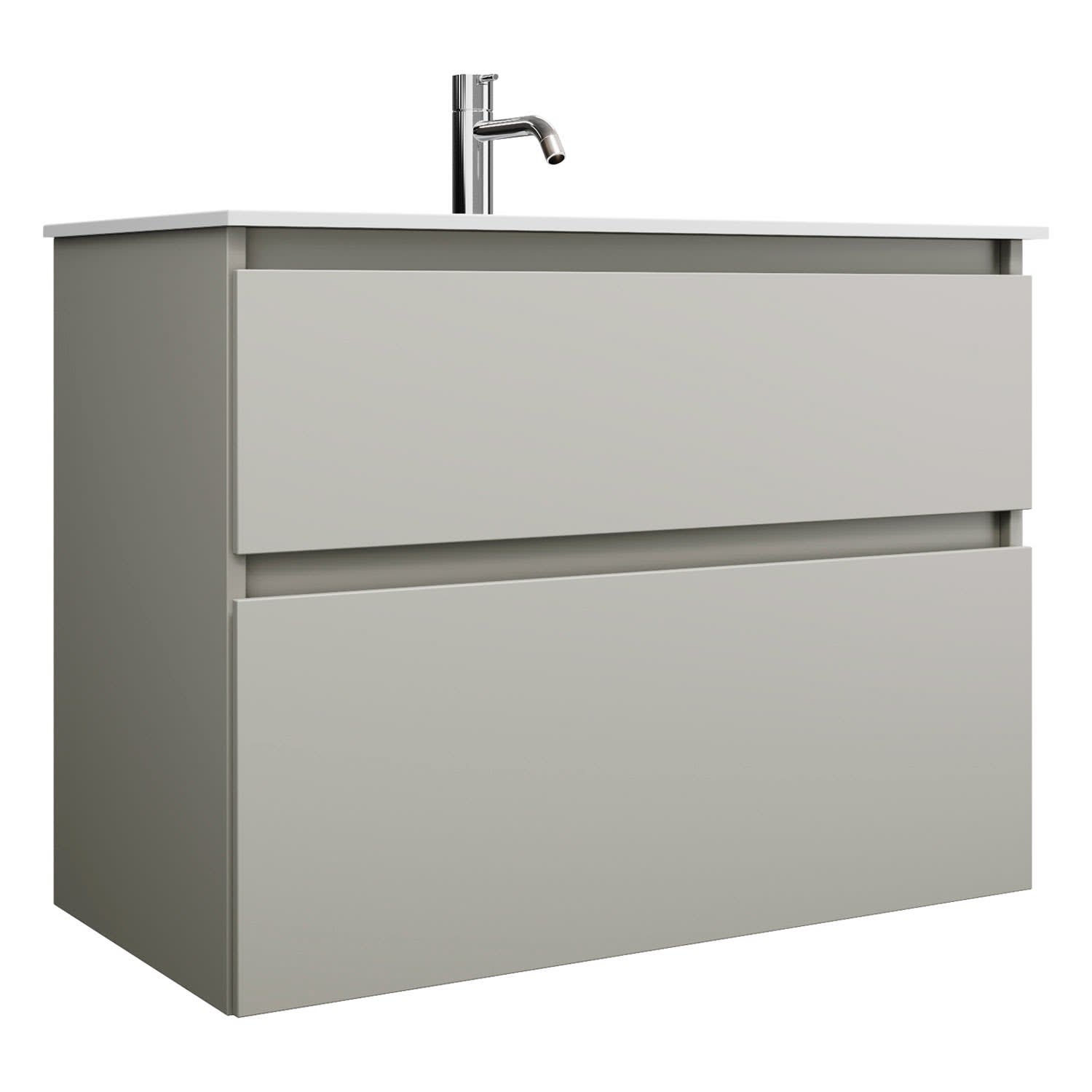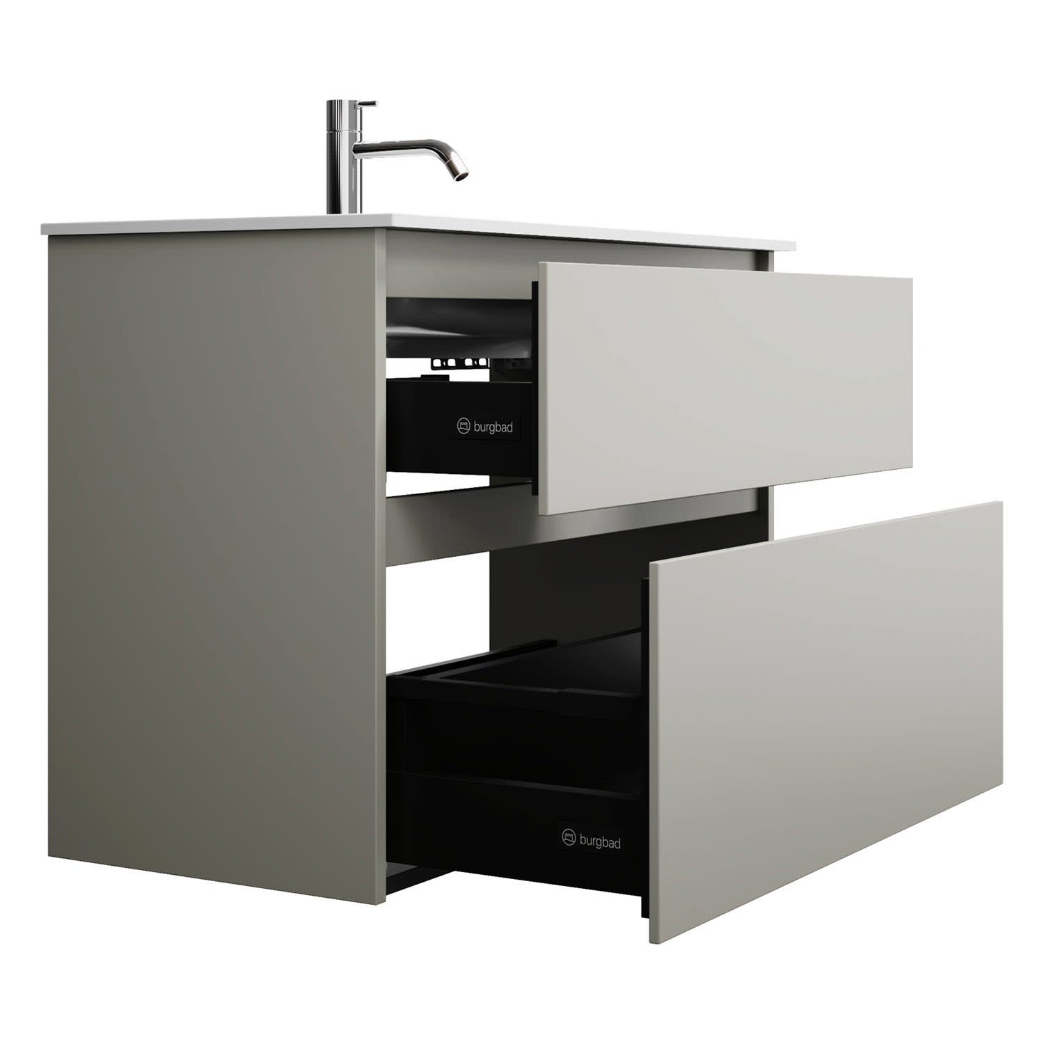burgbad Lin20 Waschtischunterschrank mit Mineralguss-Waschtisch 82 cm, 2 Auszüge