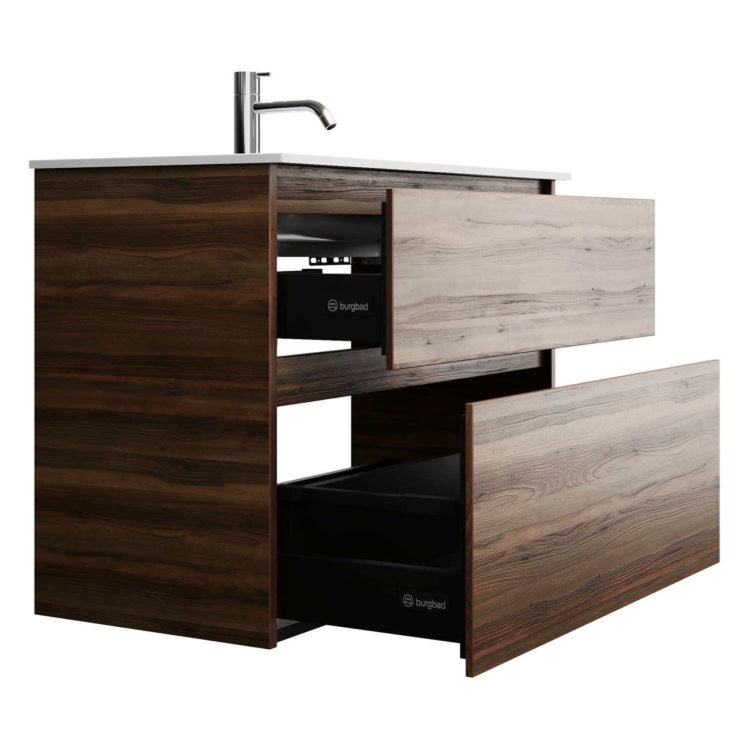 burgbad Lin20 Waschtischunterschrank mit Mineralguss-Waschtisch 82 cm, 2 Auszüge