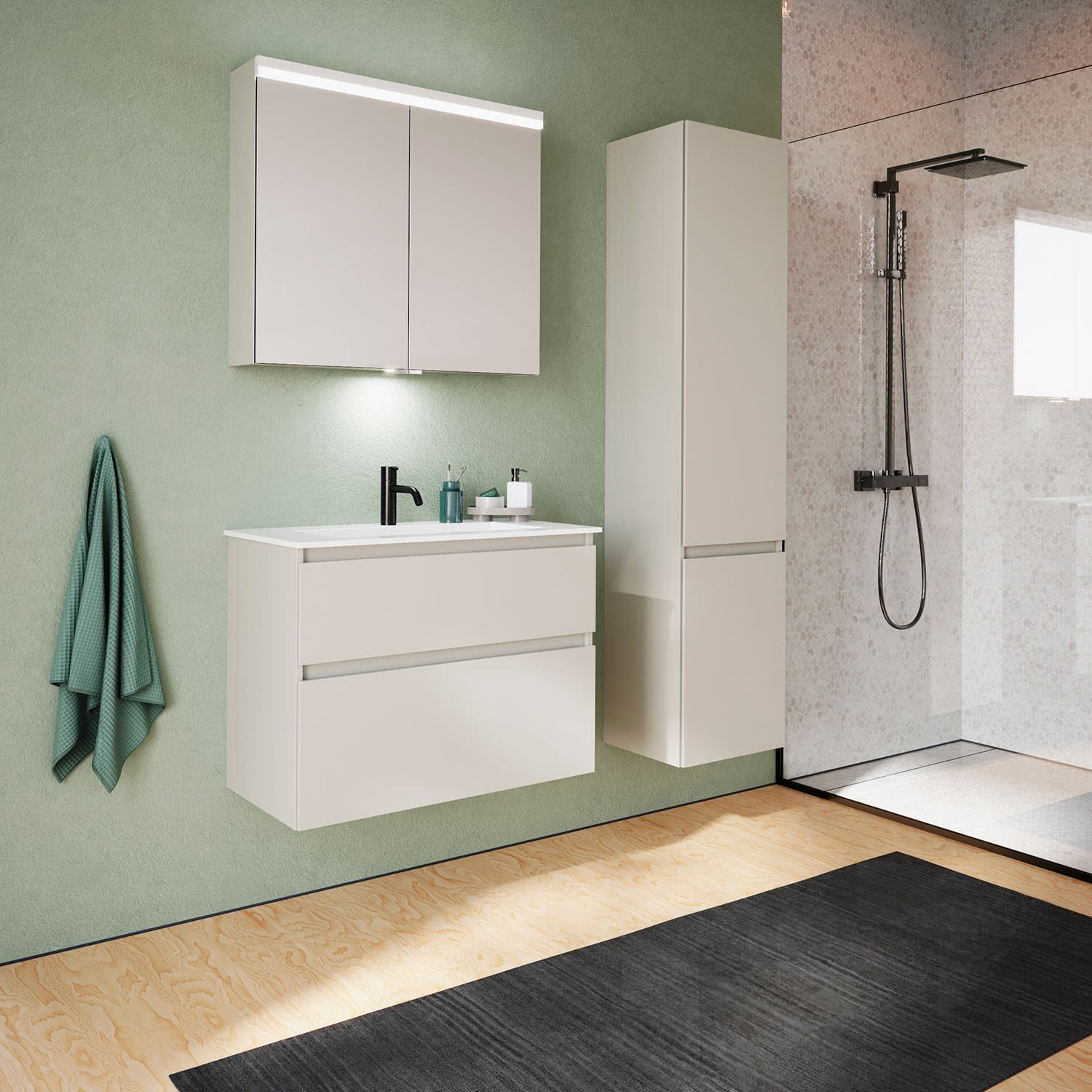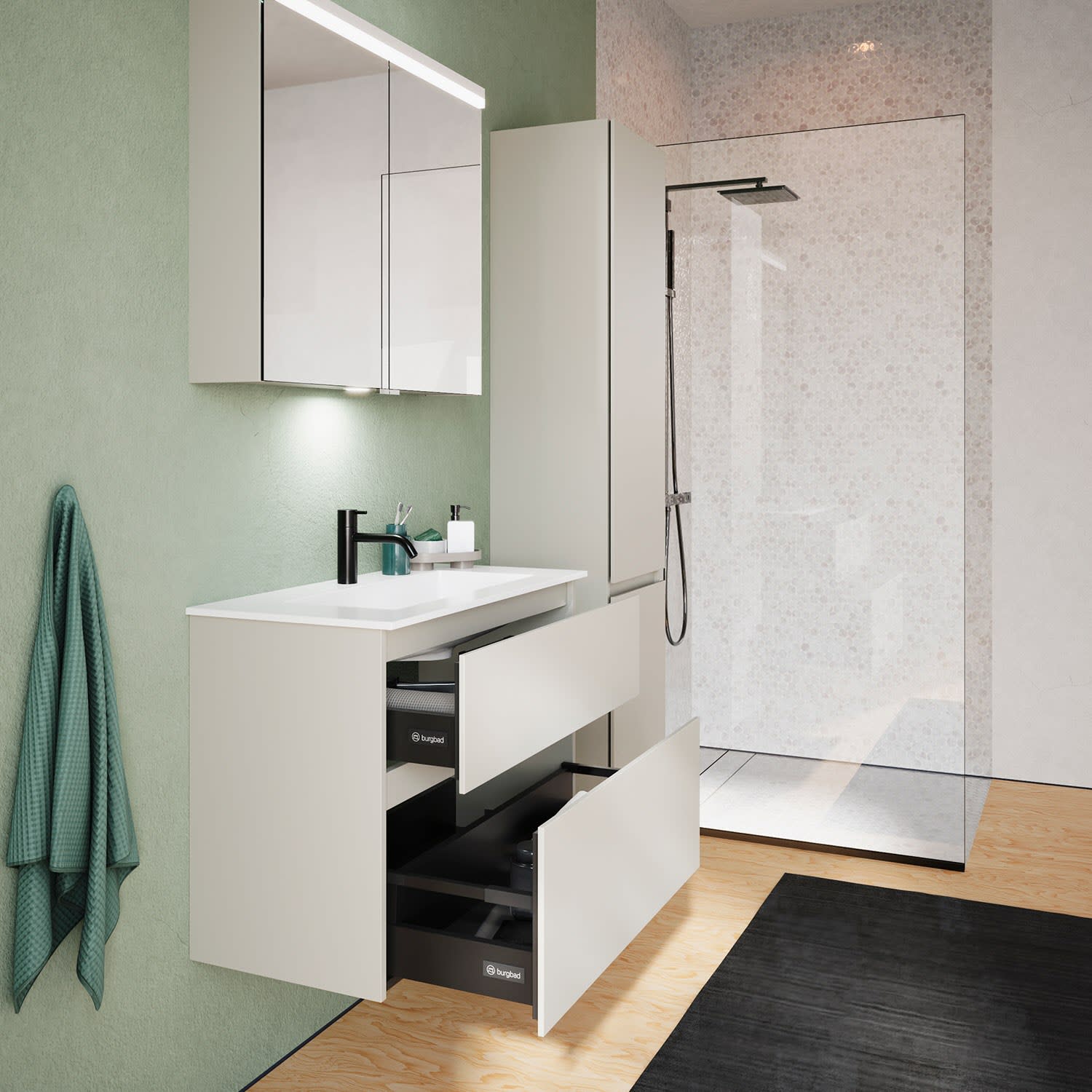 burgbad Lin20 Waschtischunterschrank mit Mineralguss-Waschtisch 82 cm, 2 Auszüge