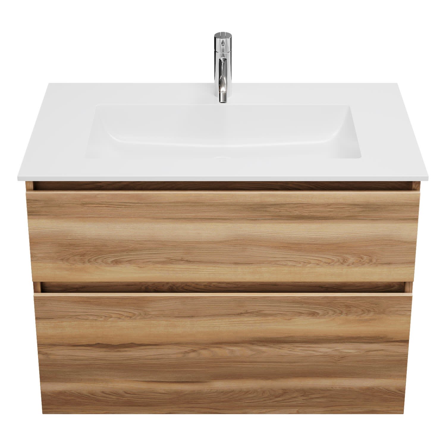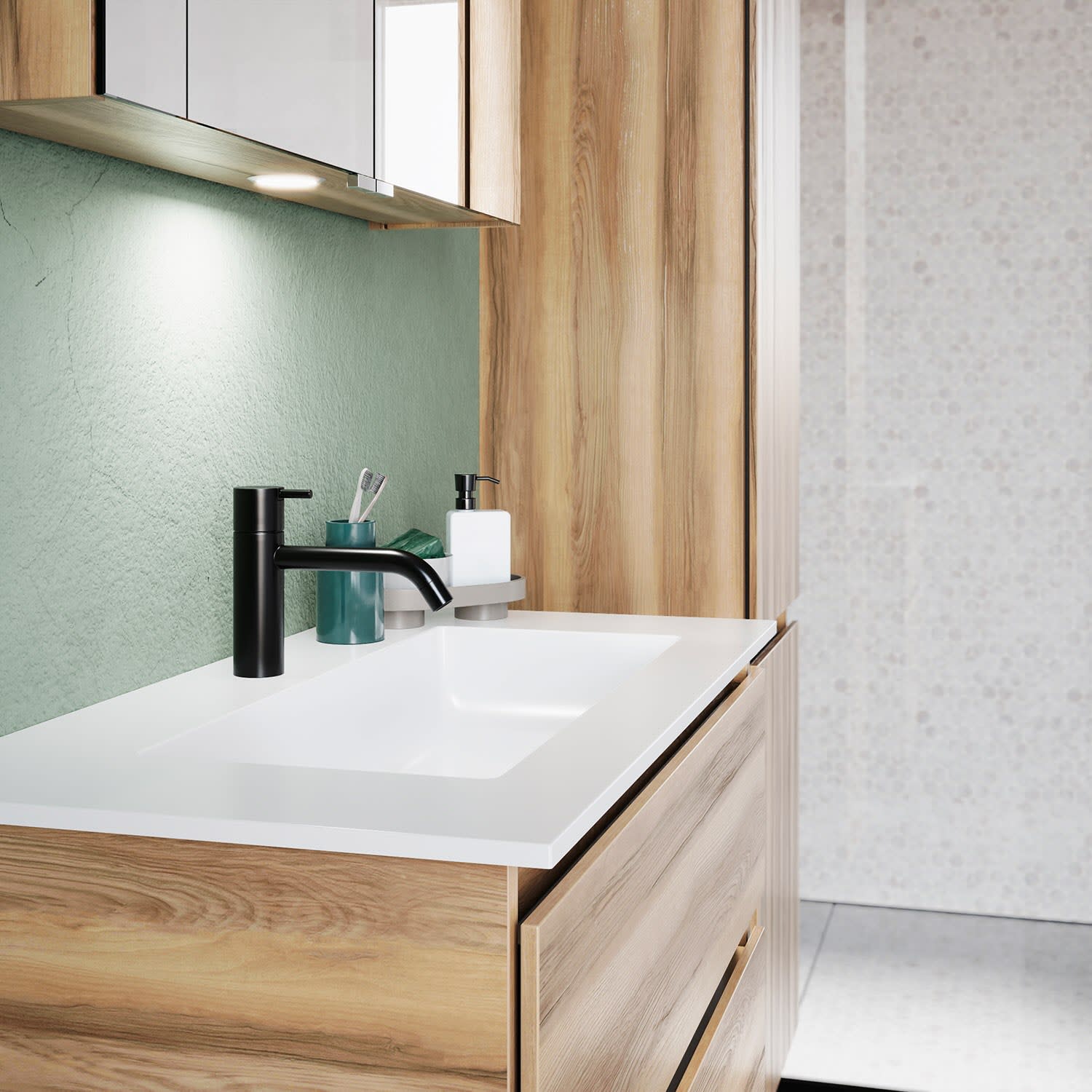 burgbad Lin20 Waschtischunterschrank mit Mineralguss-Waschtisch 82 cm, 2 Auszüge