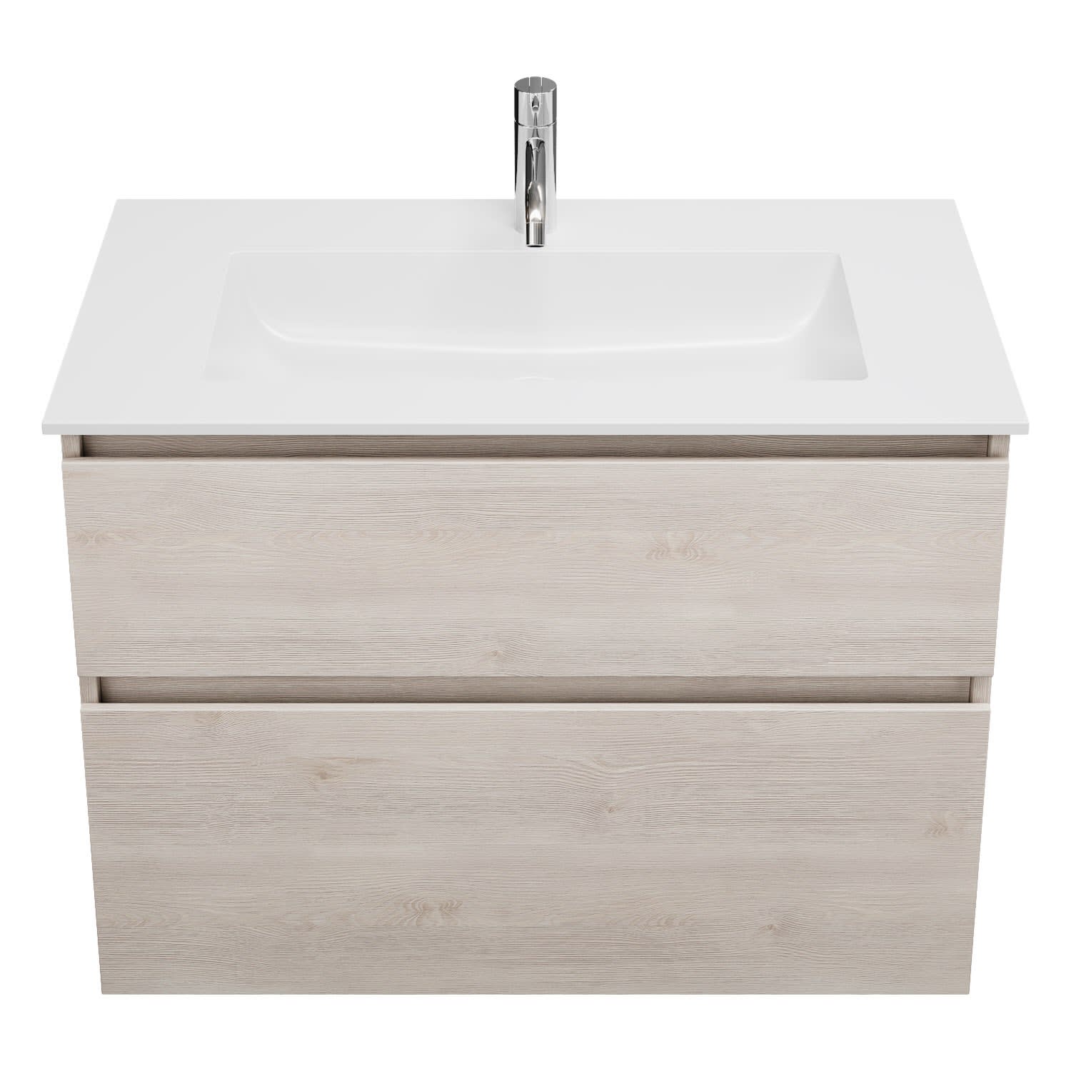 burgbad Lin20 Waschtischunterschrank mit Mineralguss-Waschtisch 82 cm, 2 Auszüge