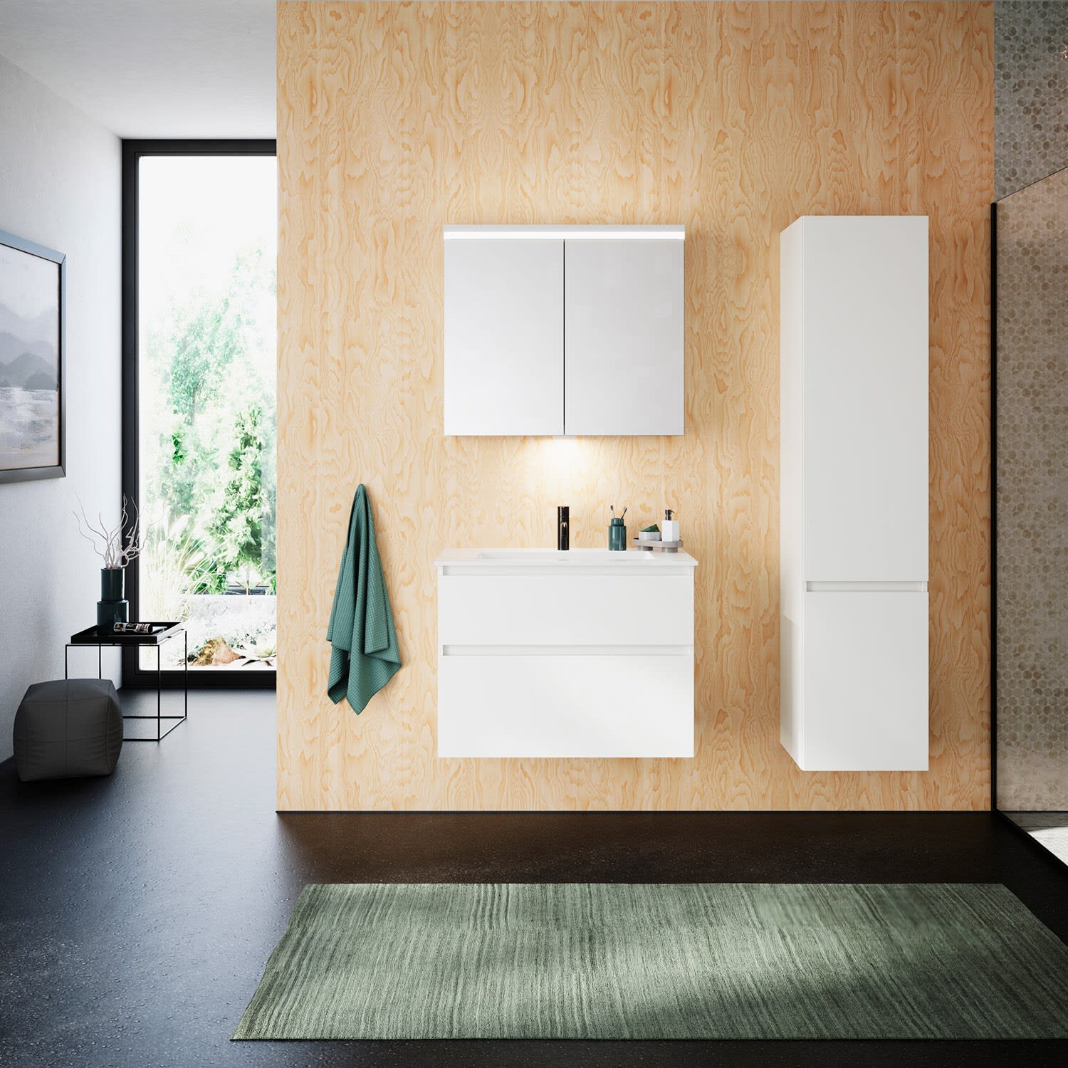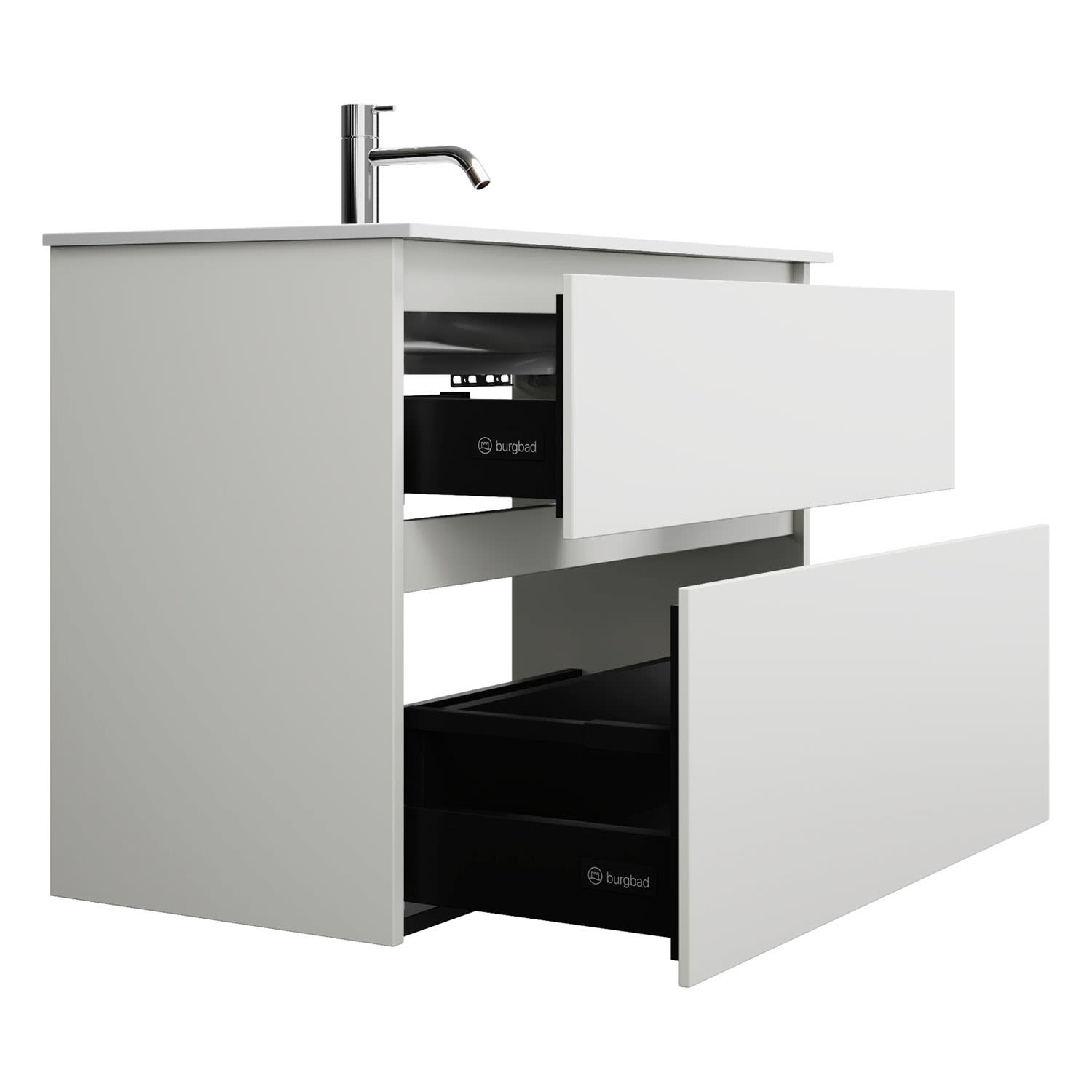 burgbad Lin20 Waschtischunterschrank mit Mineralguss-Waschtisch 82 cm, 2 Auszüge
