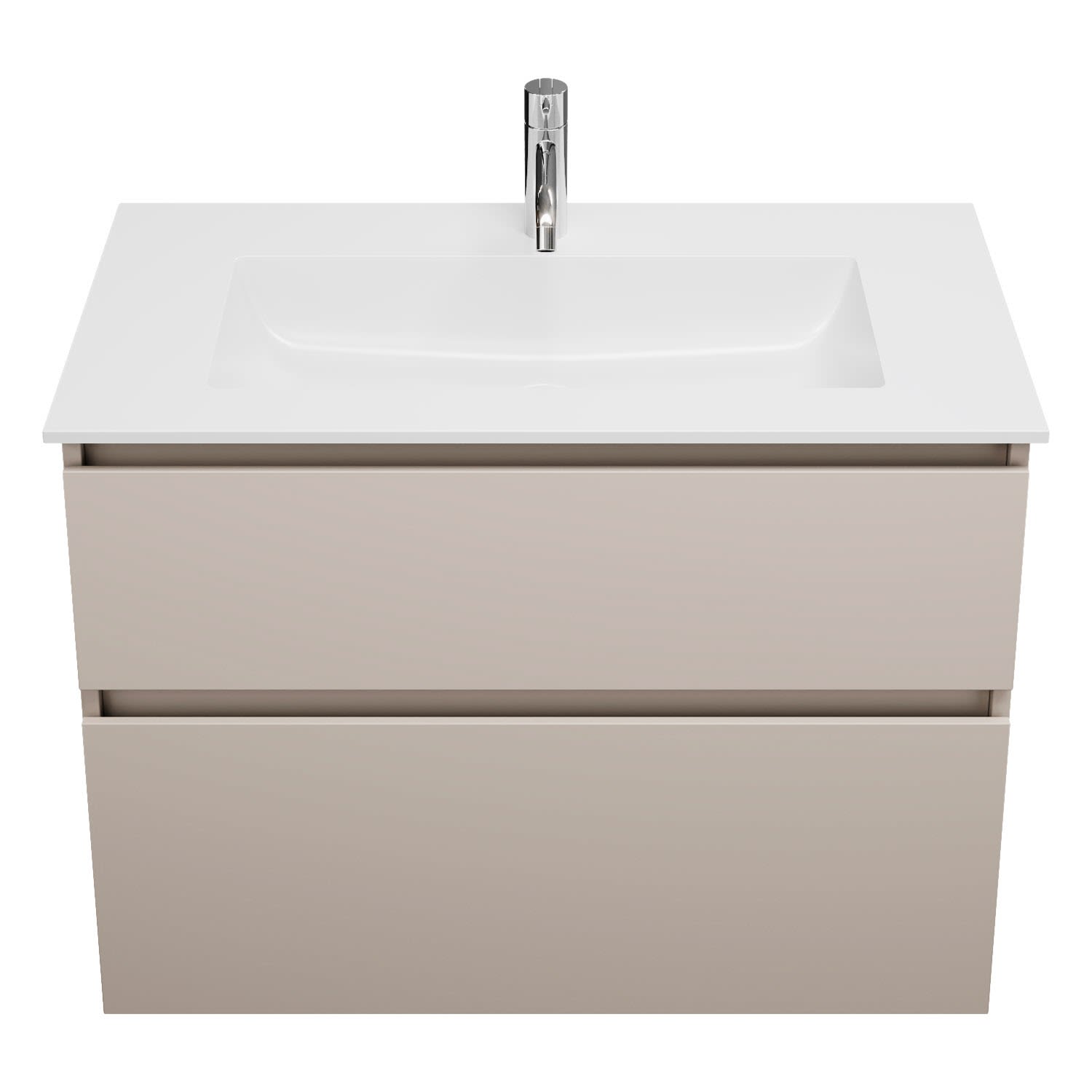 burgbad Lin20 Waschtischunterschrank mit Mineralguss-Waschtisch 82 cm, 2 Auszüge