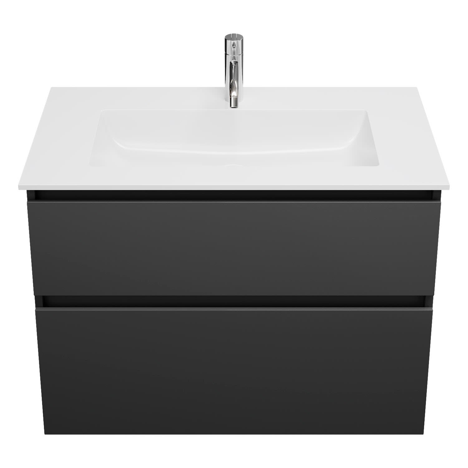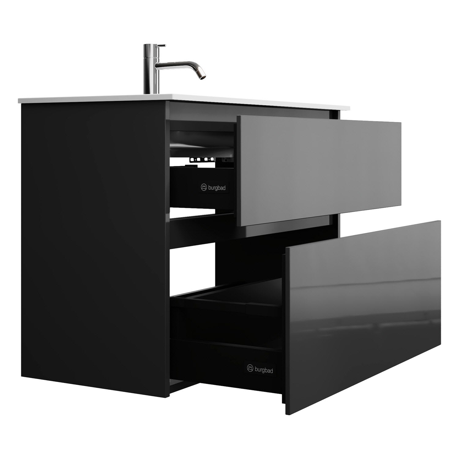 burgbad Lin20 Waschtischunterschrank mit Mineralguss-Waschtisch 82 cm, 2 Auszüge
