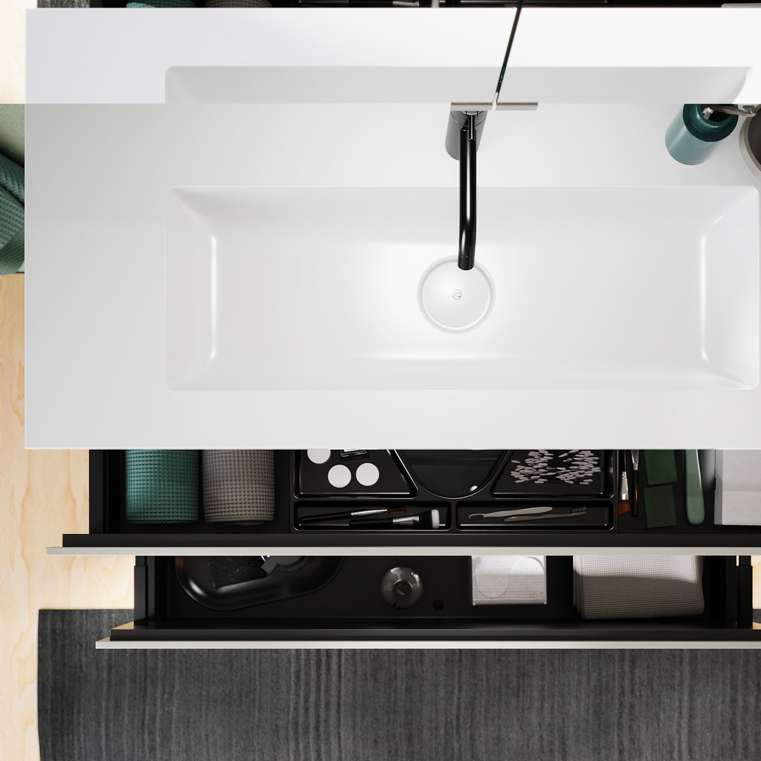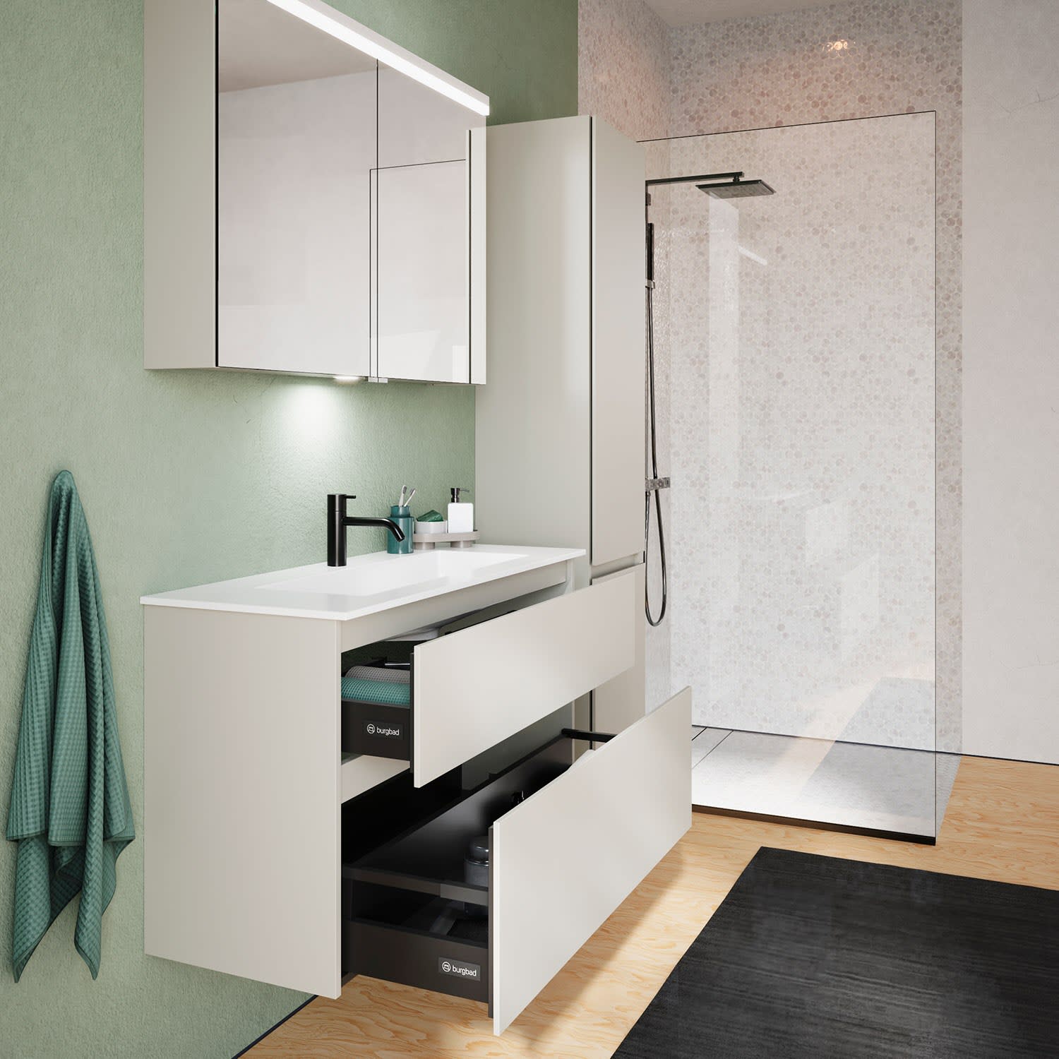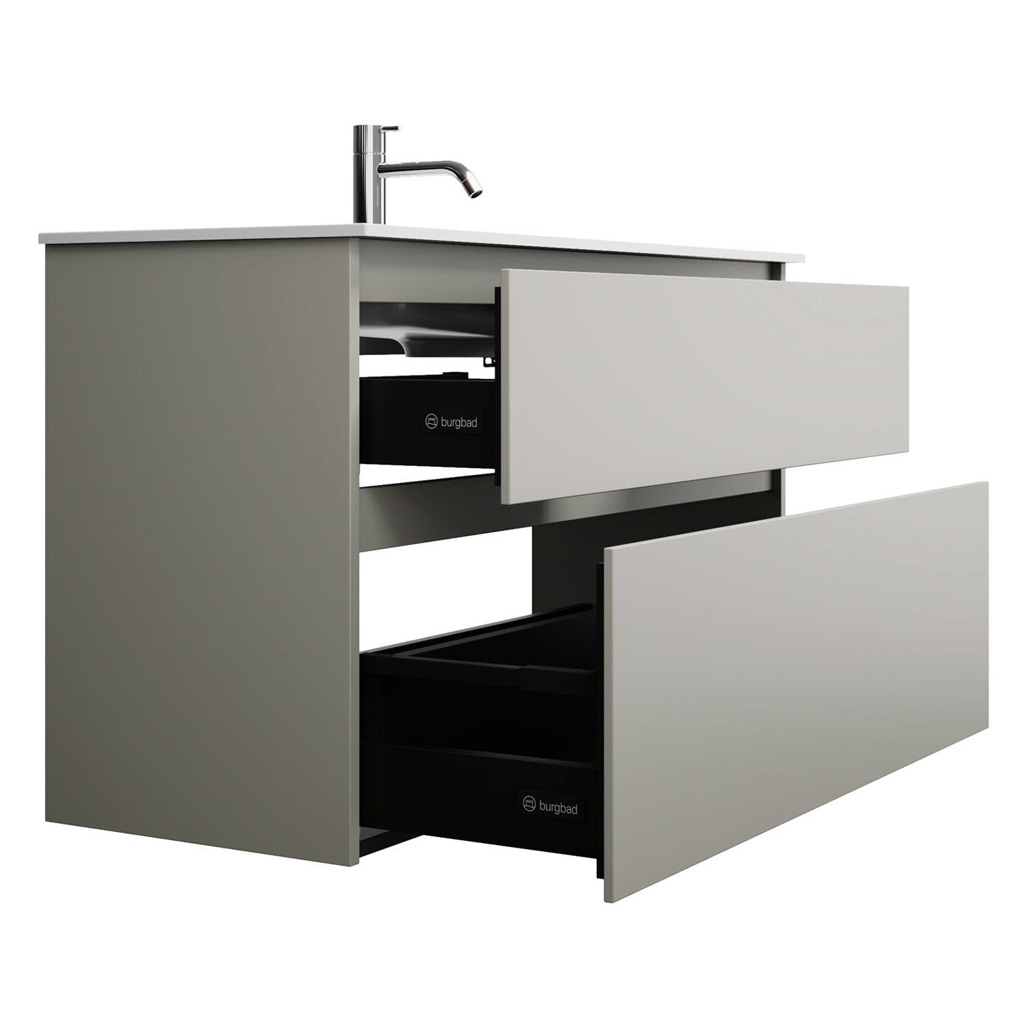 burgbad Lin20 Waschtischunterschrank mit Mineralguss-Waschtisch 102 cm, 2 Auszüge