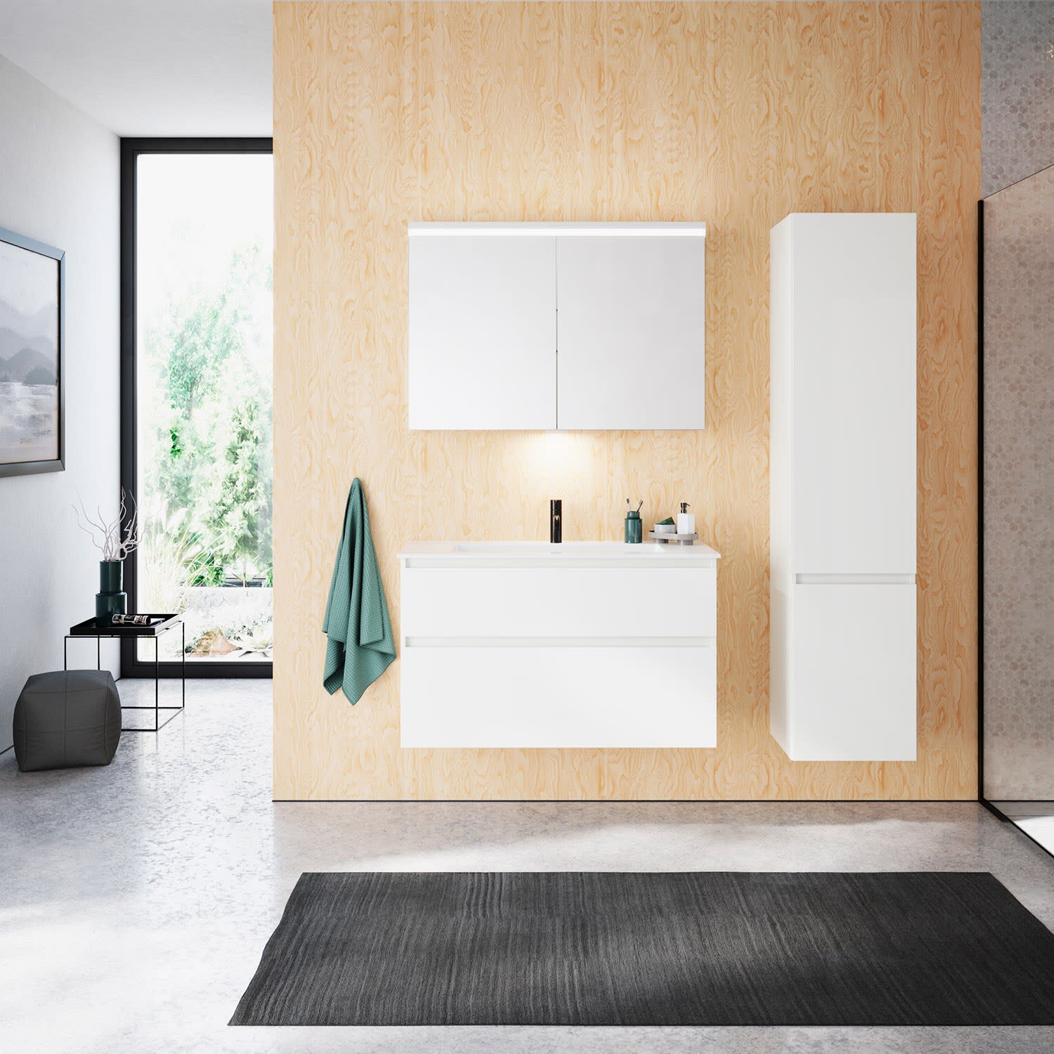burgbad Lin20 Waschtischunterschrank mit Mineralguss-Waschtisch 102 cm, 2 Auszüge