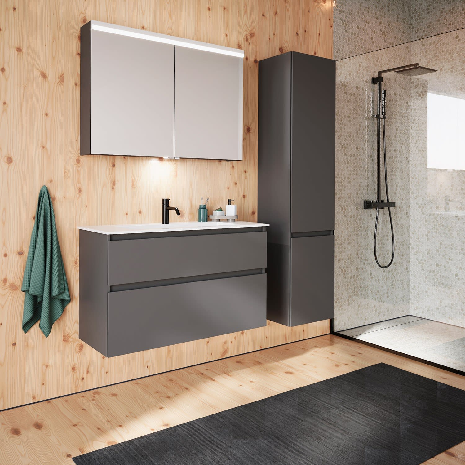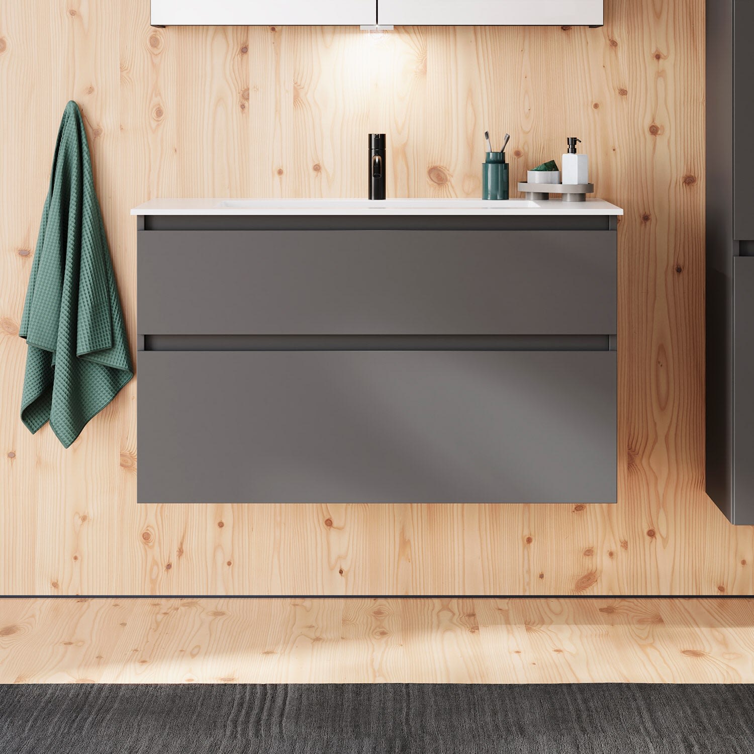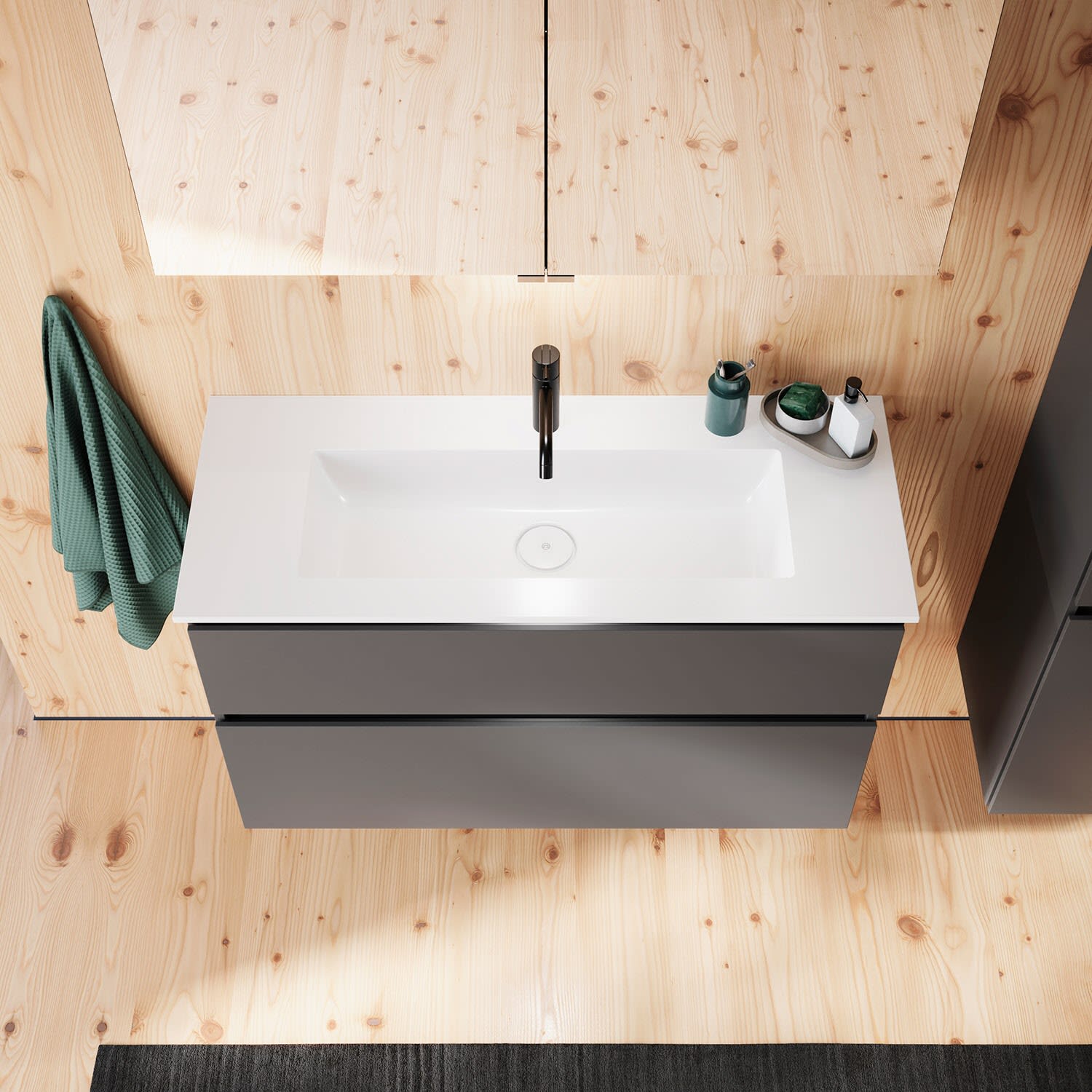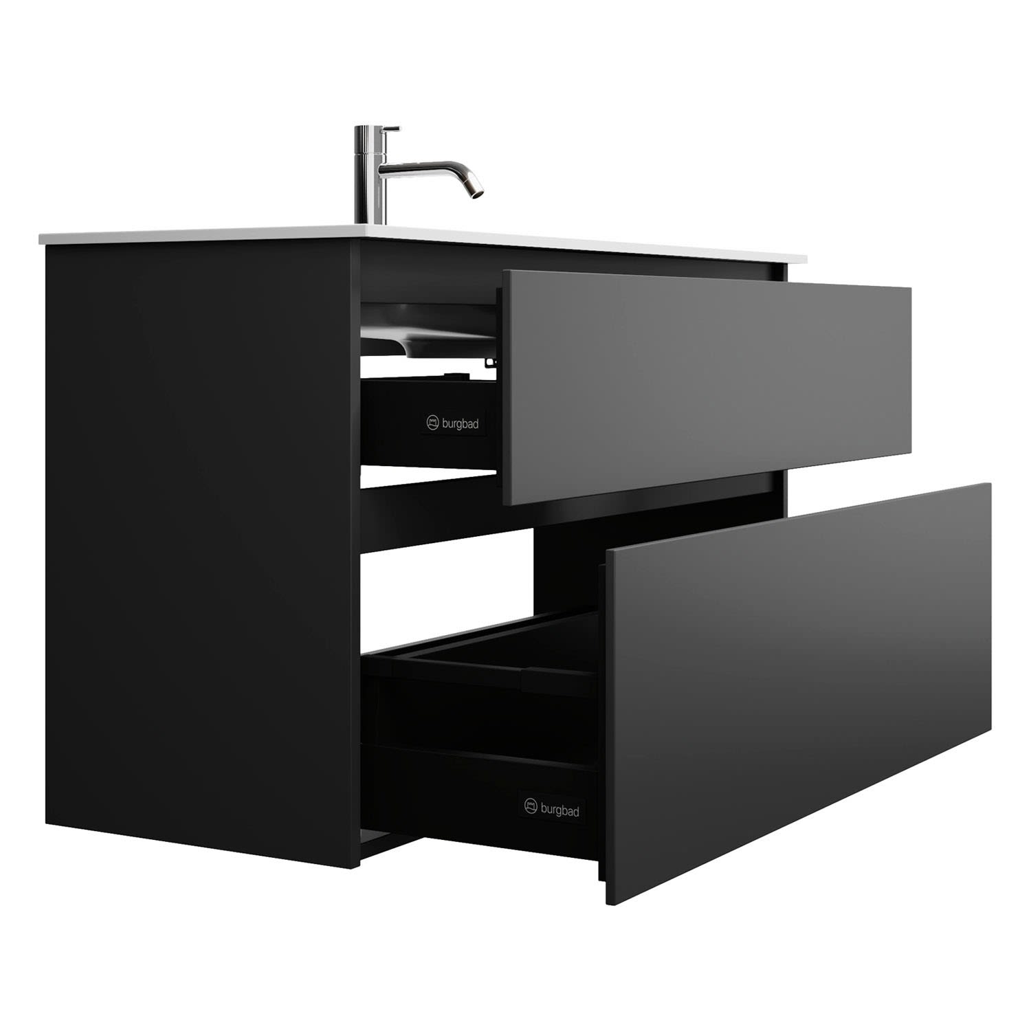 burgbad Lin20 Waschtischunterschrank mit Mineralguss-Waschtisch 102 cm, 2 Auszüge