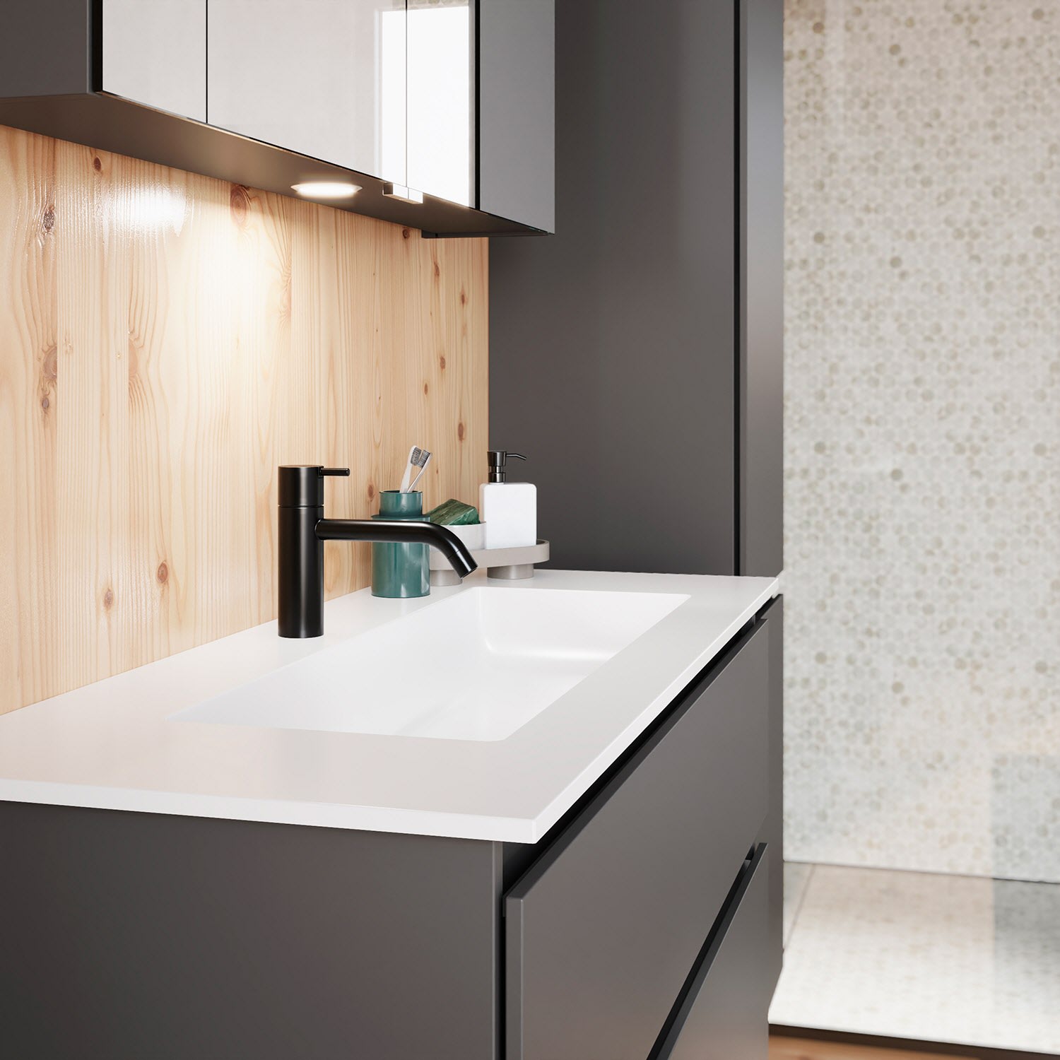 - homogene, geschlossene Oberfläche für leichte Pflege und Sauberkeit