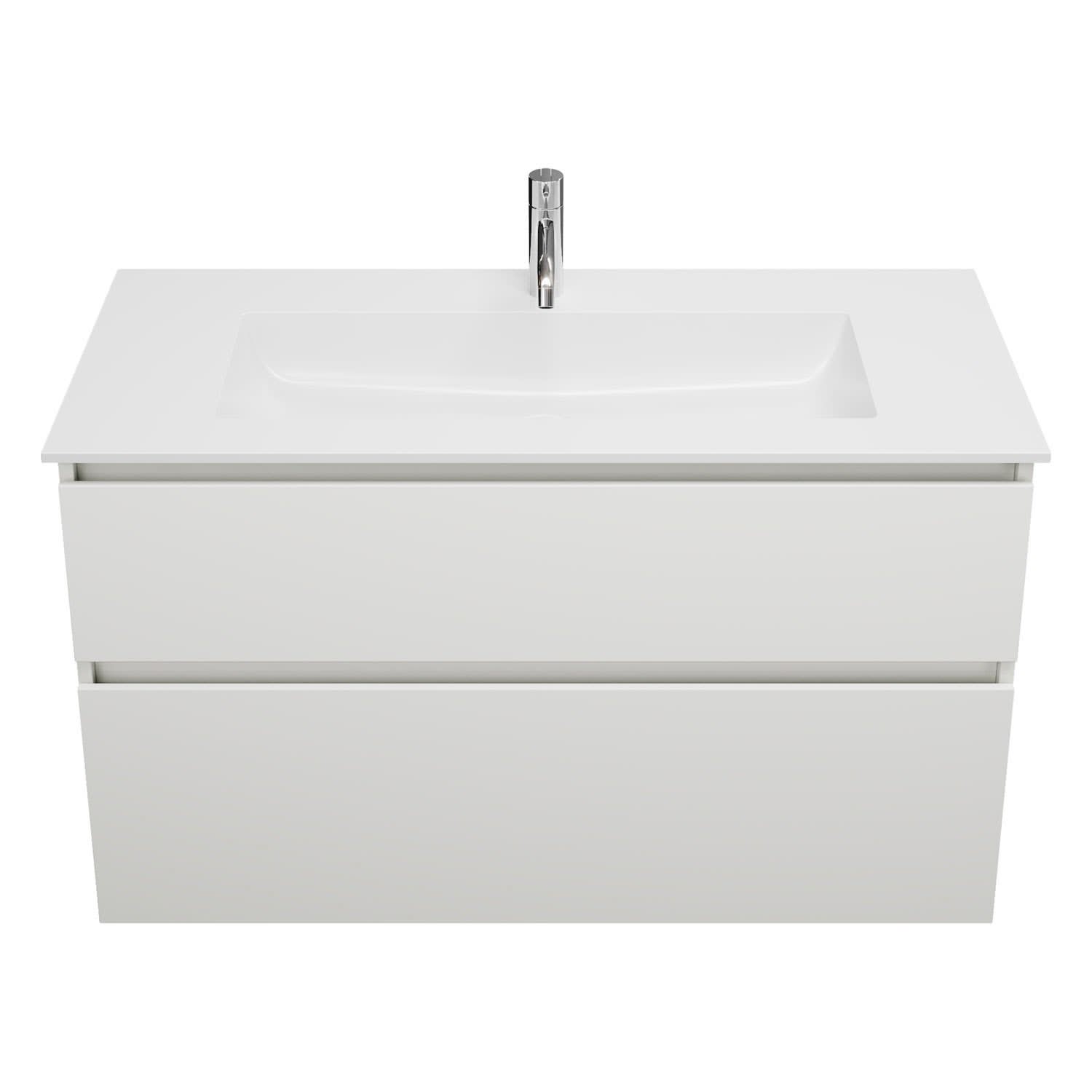 burgbad Lin20 Waschtischunterschrank mit Mineralguss-Waschtisch 102 cm, 2 Auszüge