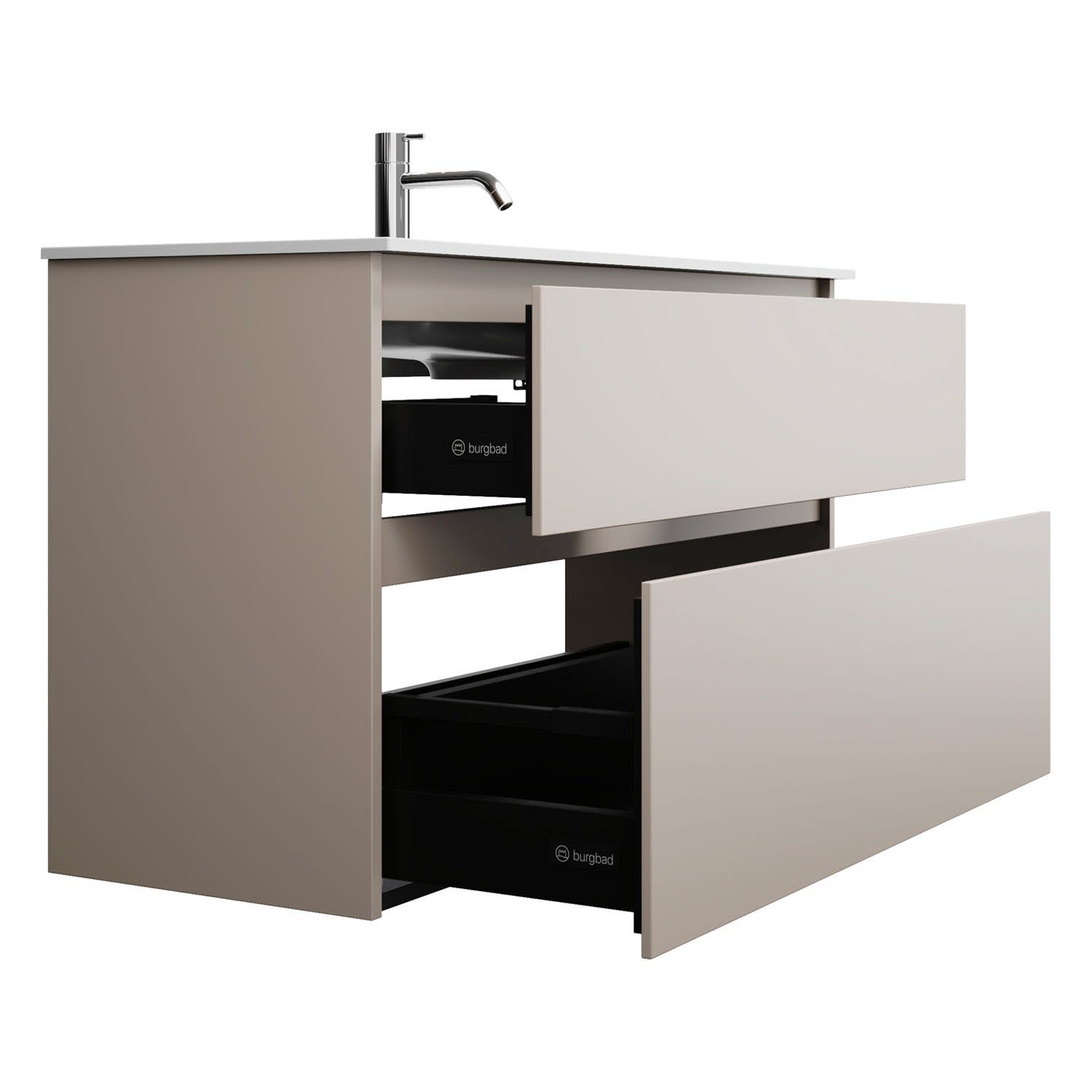burgbad Lin20 Waschtischunterschrank mit Mineralguss-Waschtisch 102 cm, 2 Auszüge