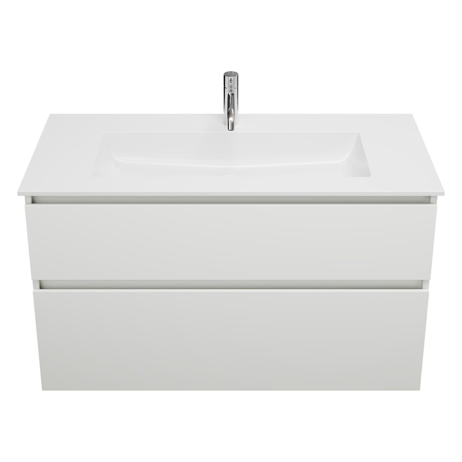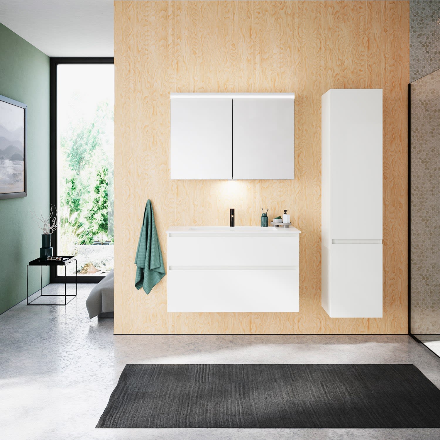 burgbad Lin20 Waschtischunterschrank mit Mineralguss-Waschtisch 102 cm, 2 Auszüge