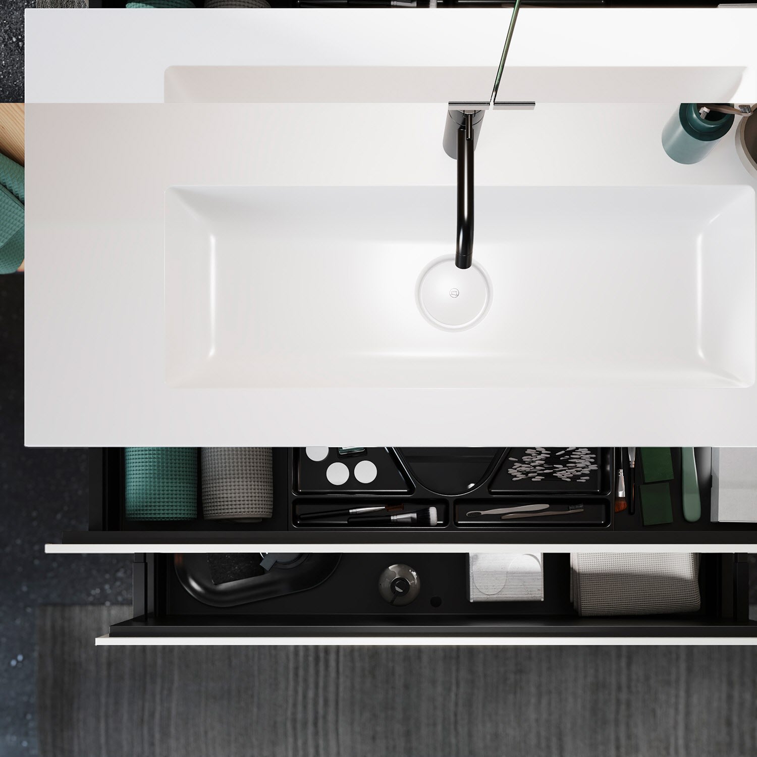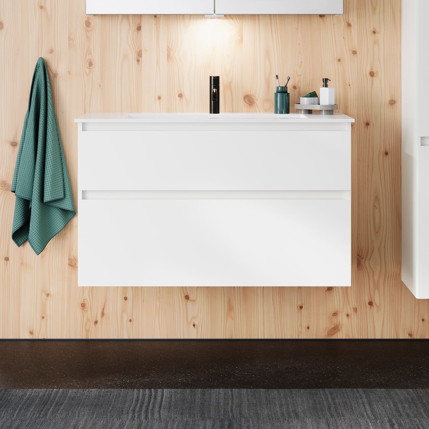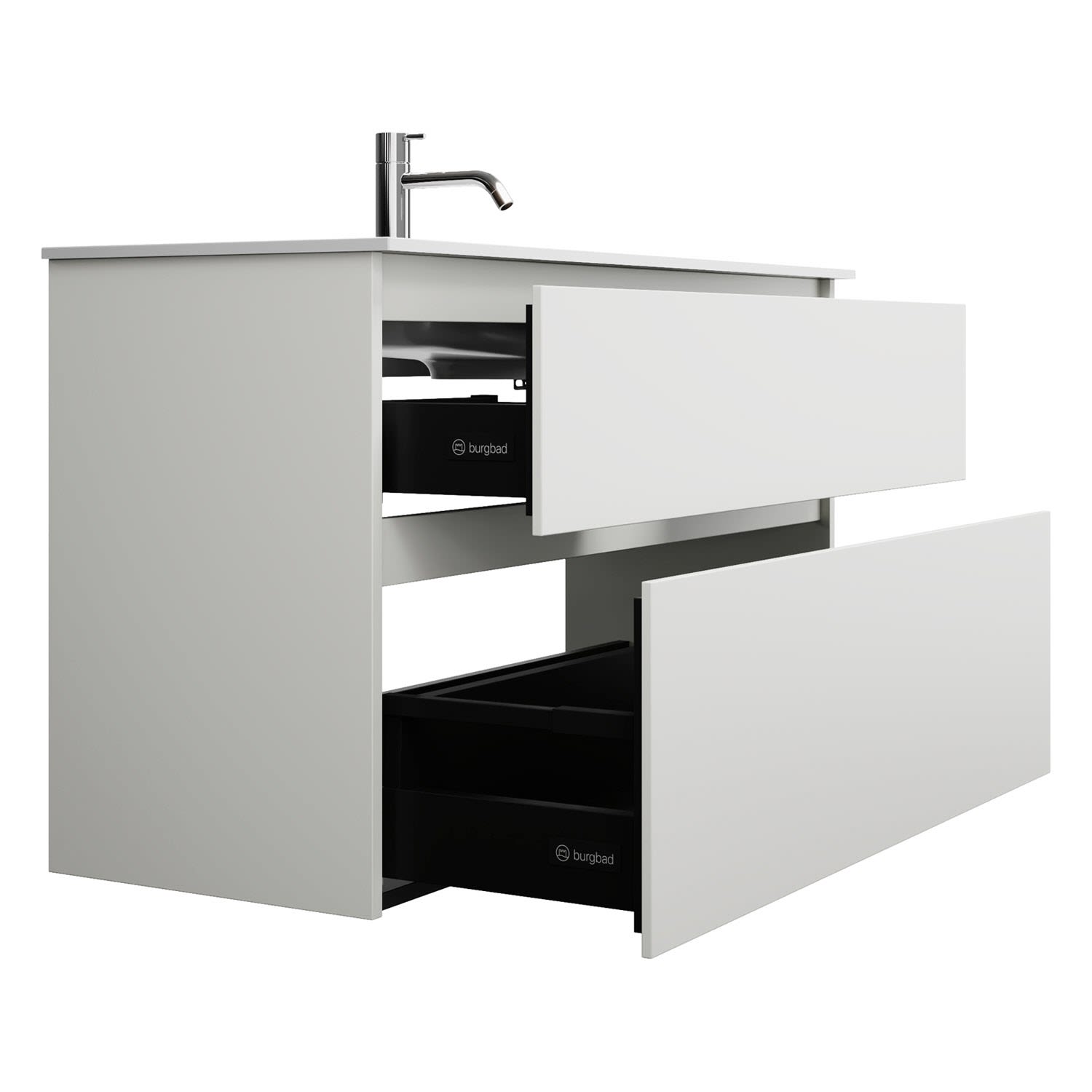 burgbad Lin20 Waschtischunterschrank mit Mineralguss-Waschtisch 102 cm, 2 Auszüge