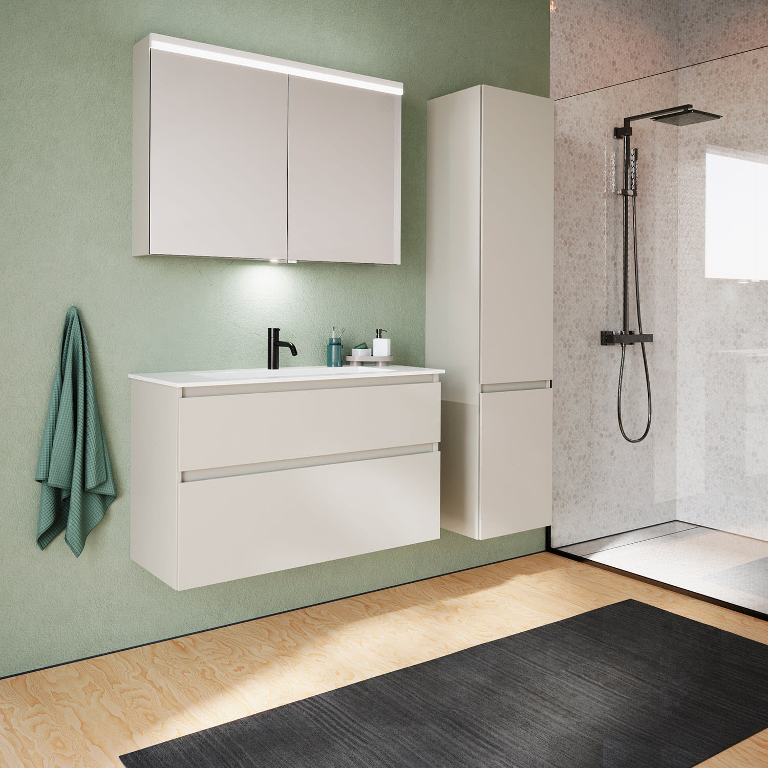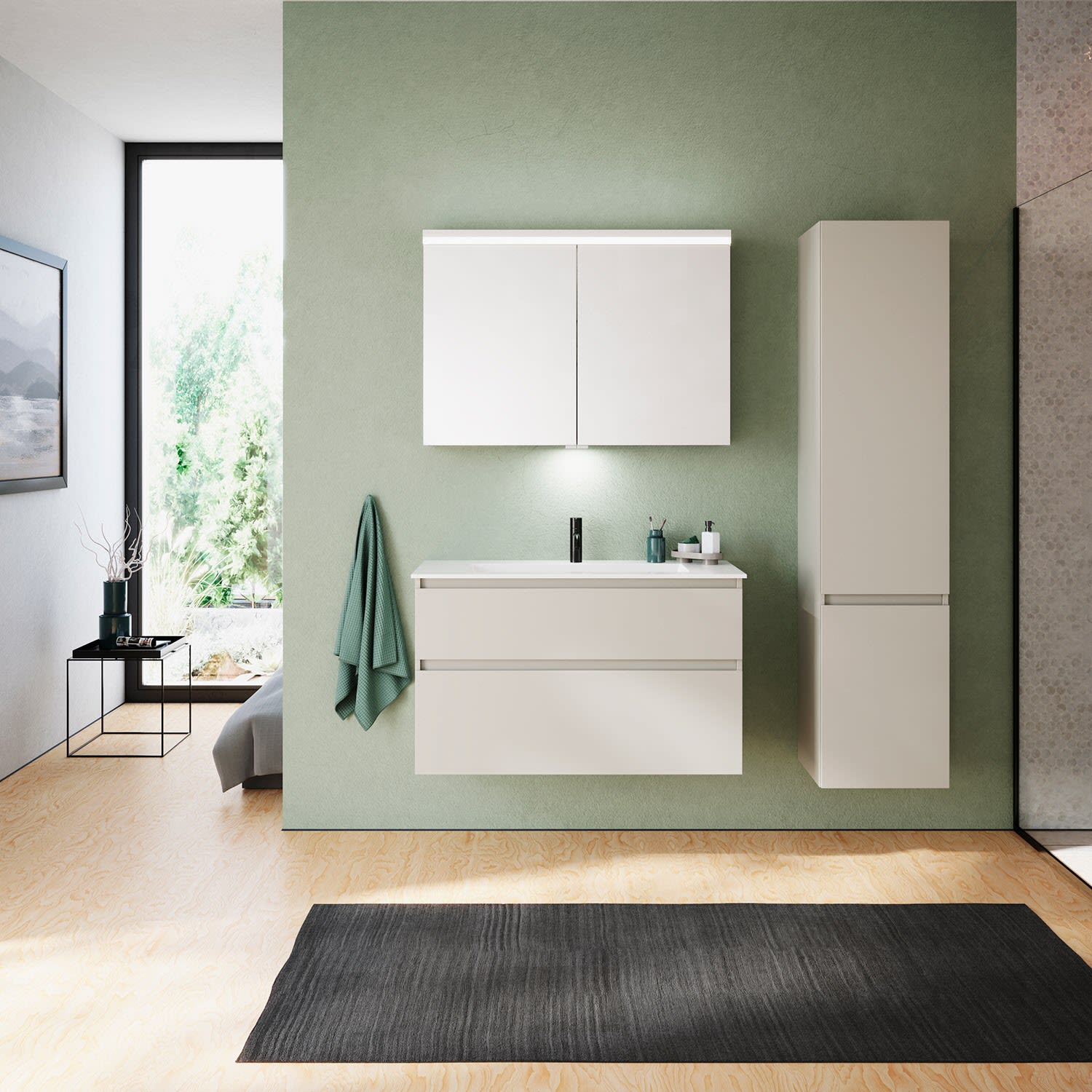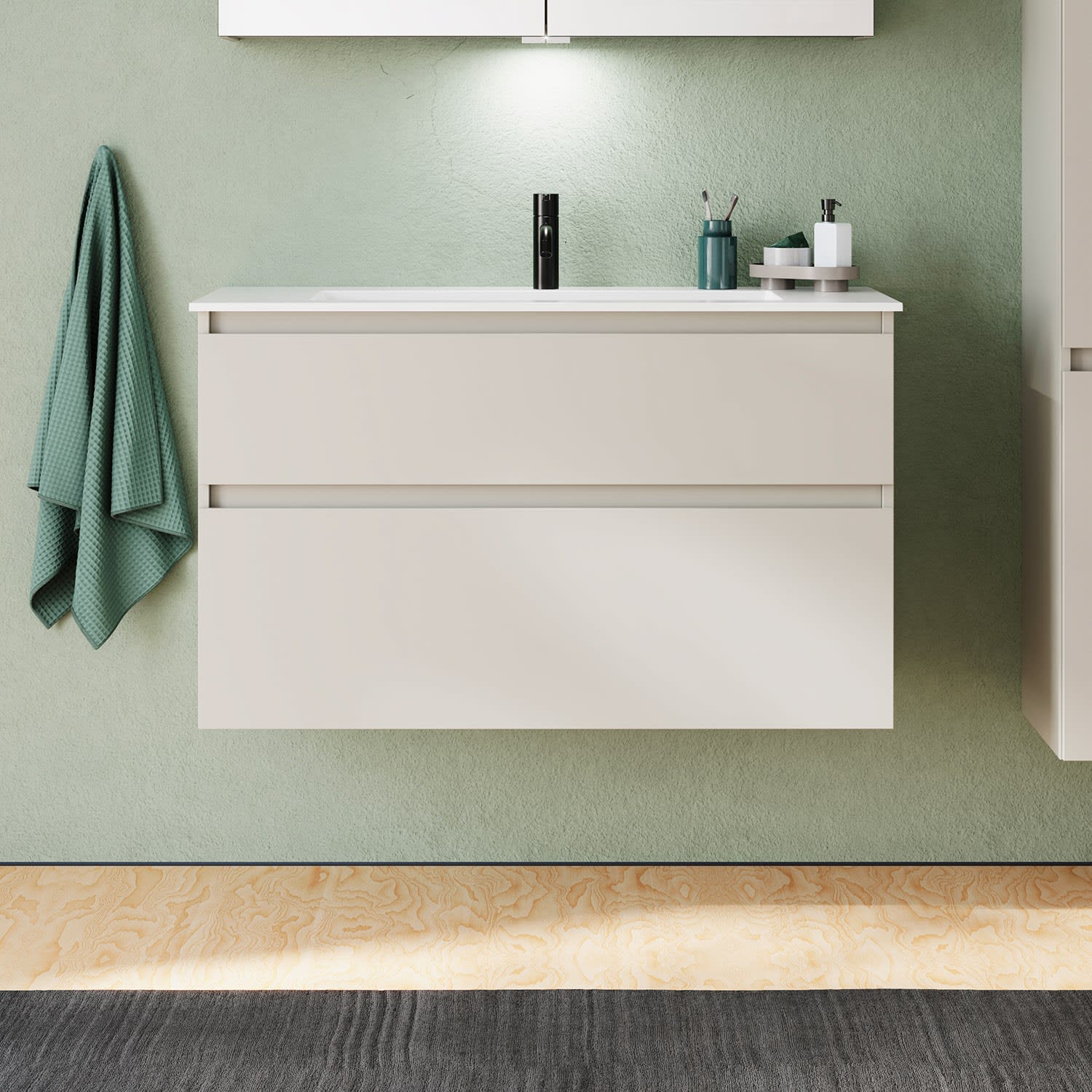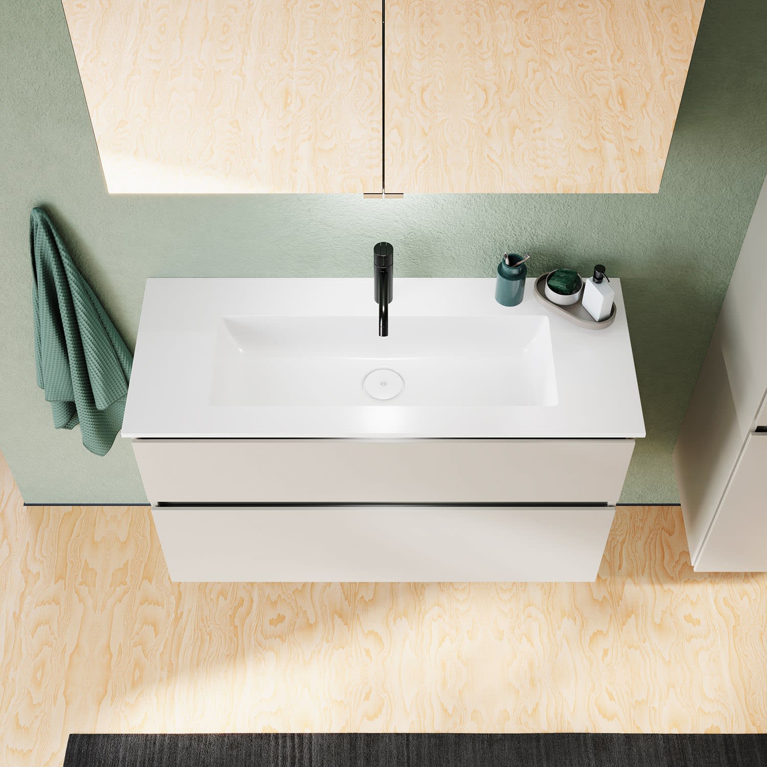 burgbad Lin20 Waschtischunterschrank mit Mineralguss-Waschtisch 102 cm, 2 Auszüge