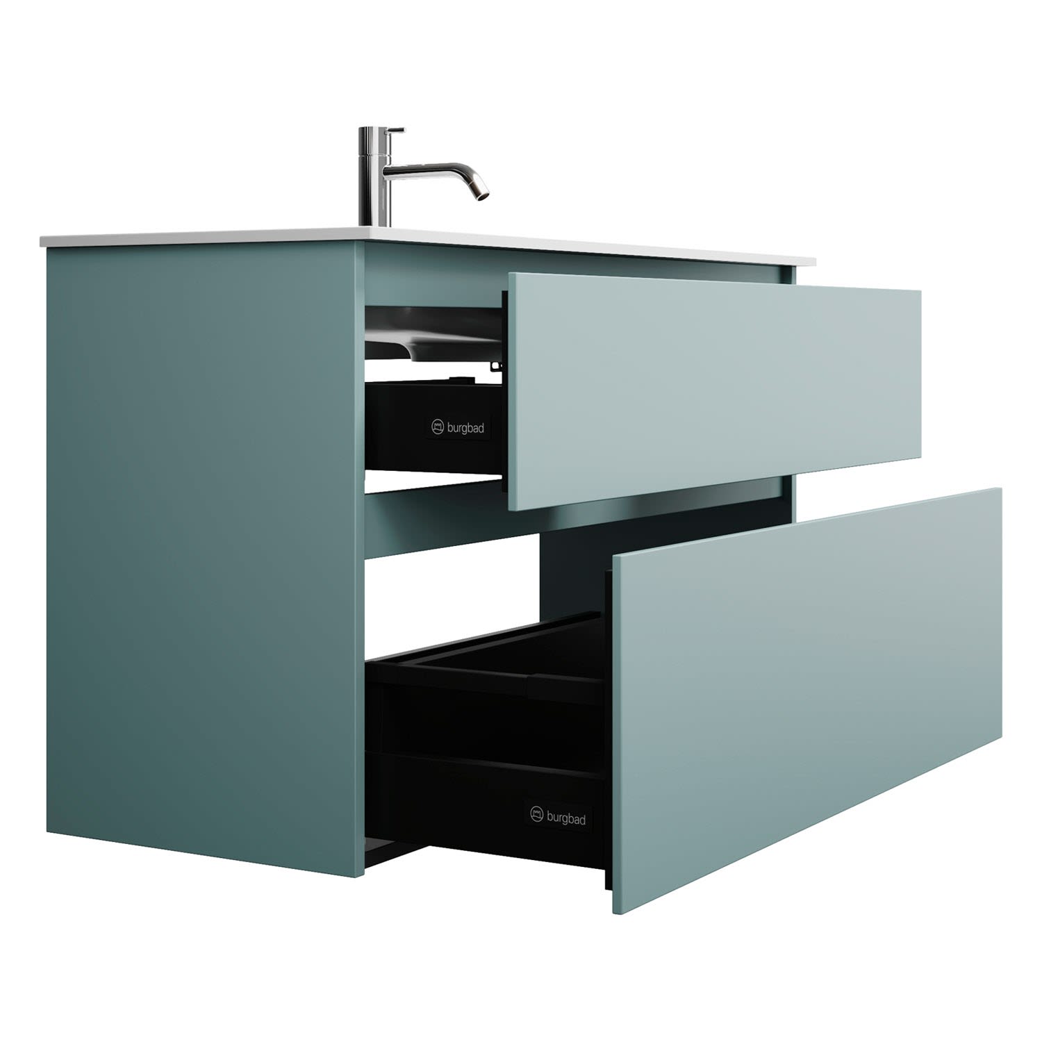 burgbad Lin20 Waschtischunterschrank mit Mineralguss-Waschtisch 102 cm, 2 Auszüge