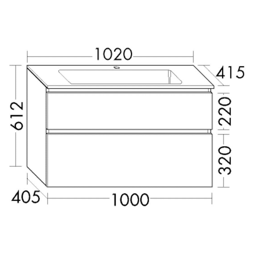 burgbad Lin20 Waschtischunterschrank mit Mineralguss-Waschtisch 102 cm, 2 Auszüge