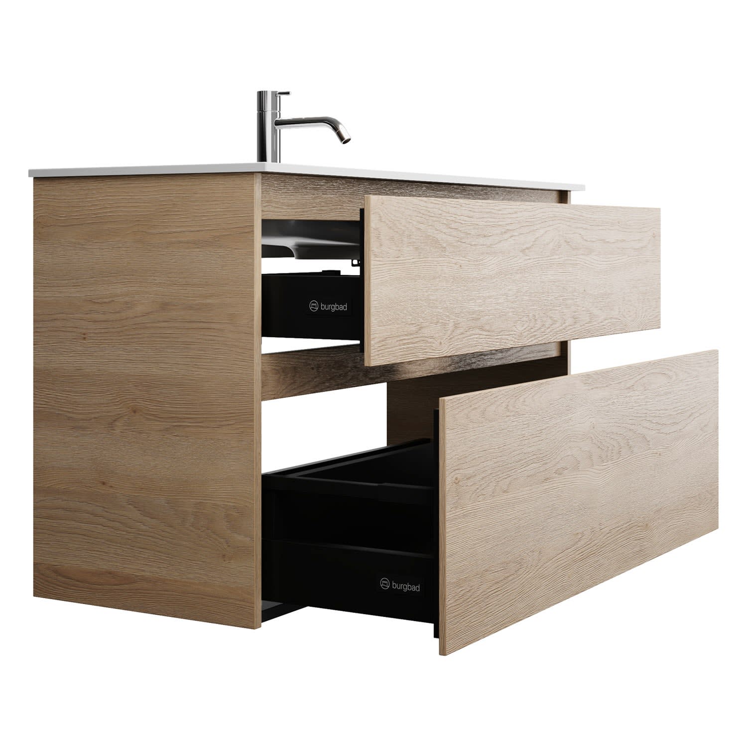 burgbad Lin20 Waschtischunterschrank mit Mineralguss-Waschtisch 102 cm, 2 Auszüge