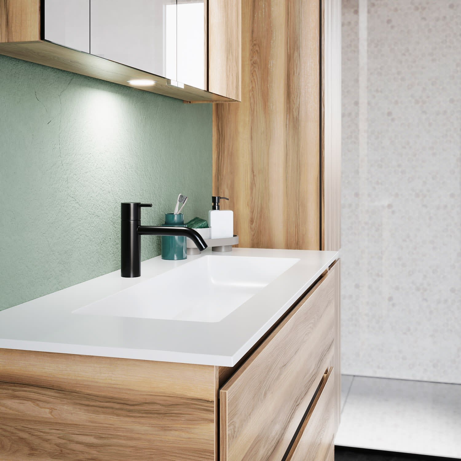 - homogene, geschlossene Oberfläche für leichte Pflege und Sauberkeit