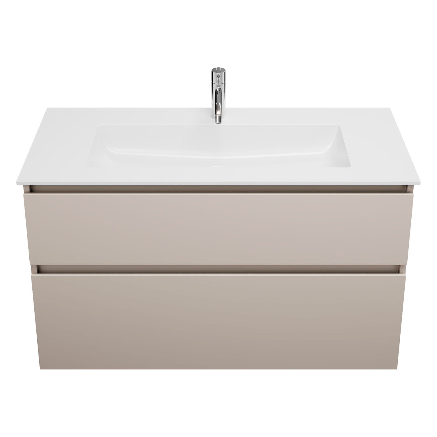burgbad Lin20 Waschtischunterschrank mit Mineralguss-Waschtisch 102 cm, 2 Auszüge