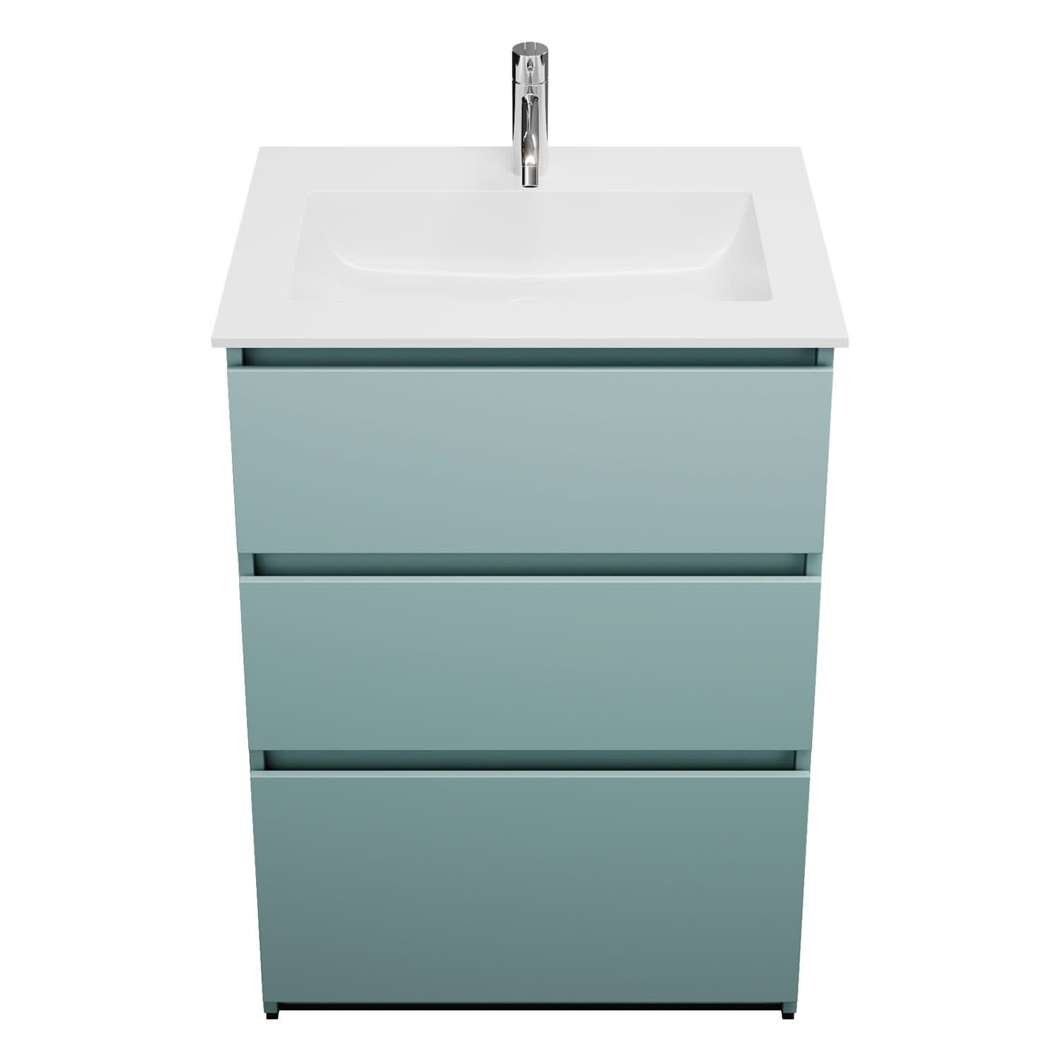 burgbad Lin20 Waschtischunterschrank mit Mineralguss-Waschtisch 62 cm, 3 Auszüge
